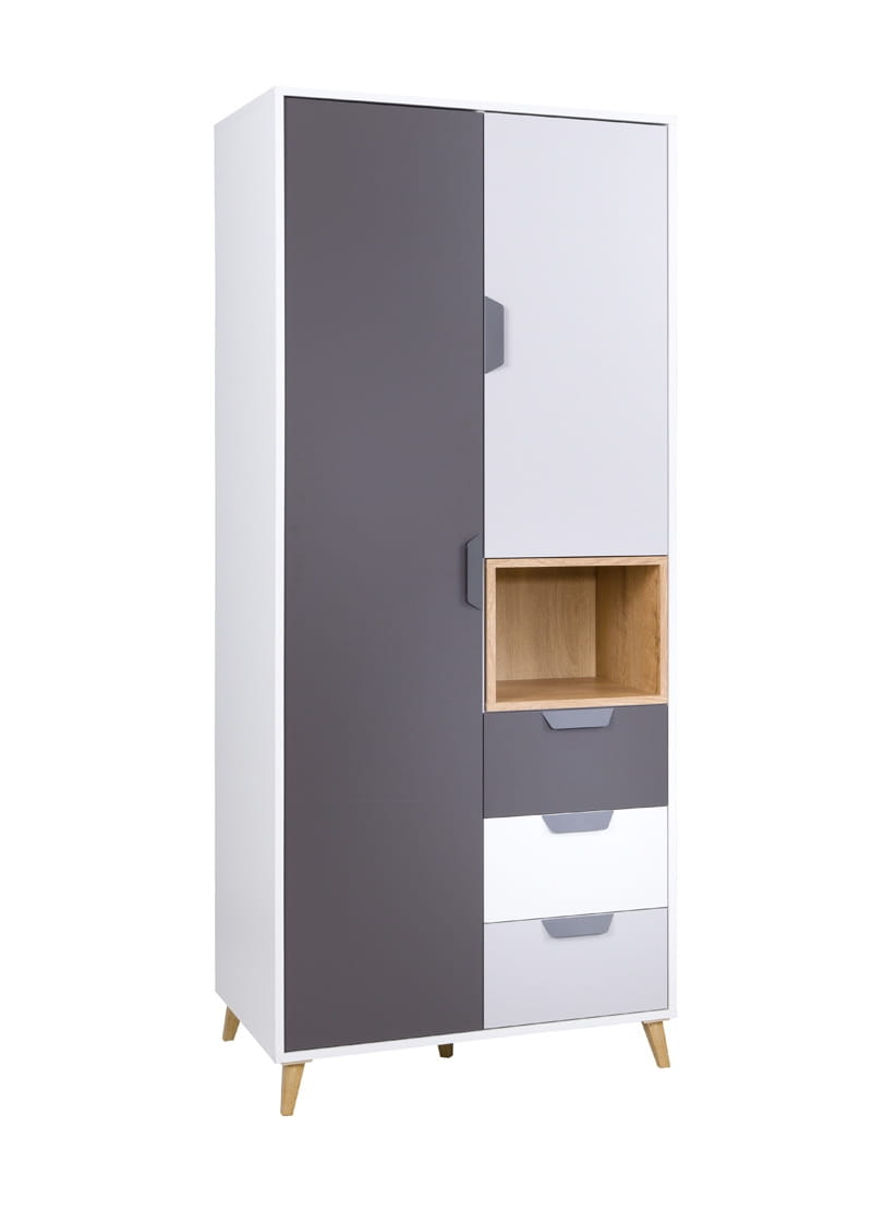 Szafa JOKER 2 szerokość 80 cm biały / grafit / szary / dąb lefkas