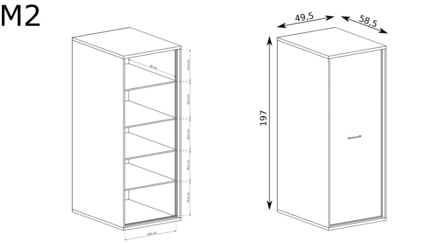 Szafa M2 szerokość 49,5 cm MEDIOLAN Hikora