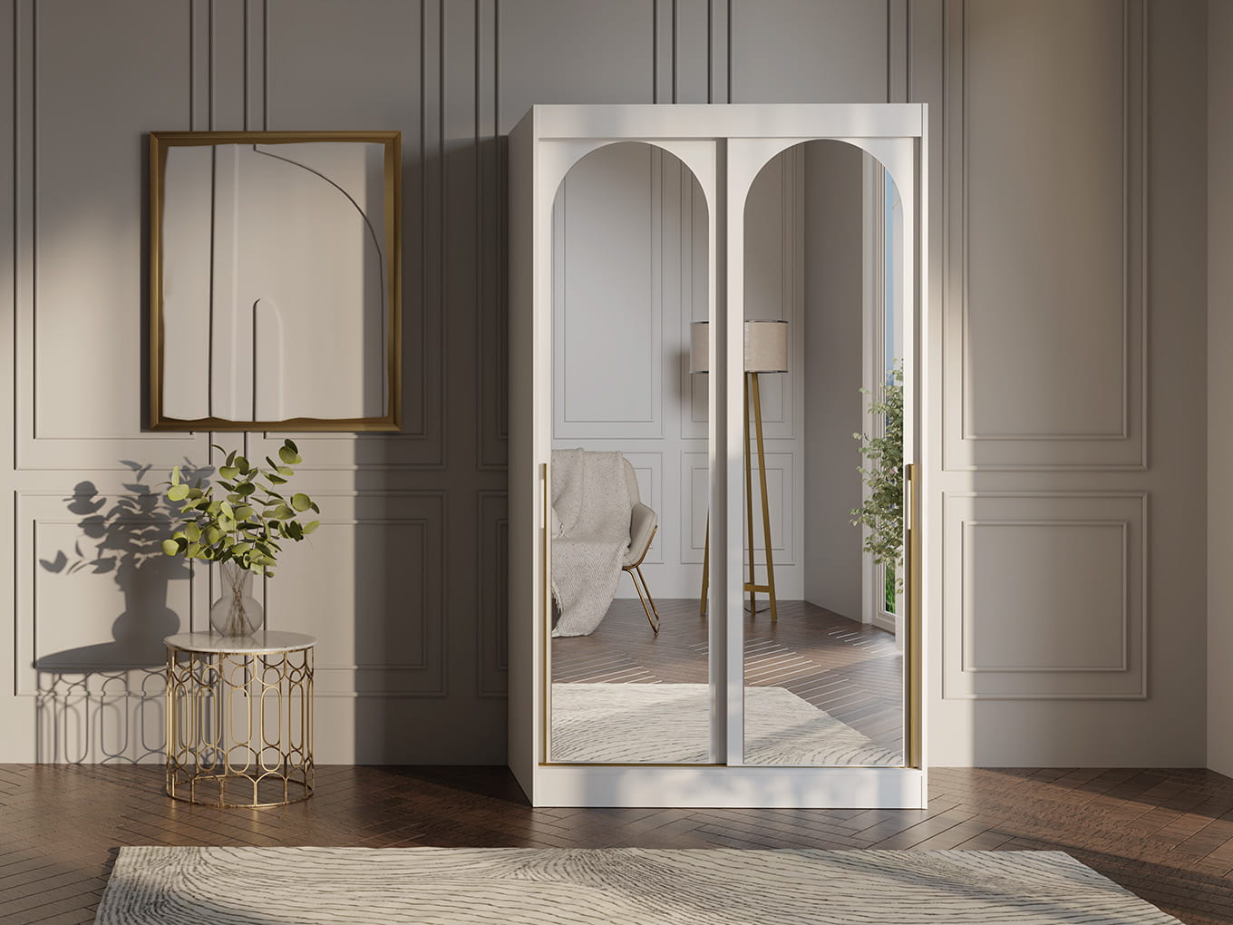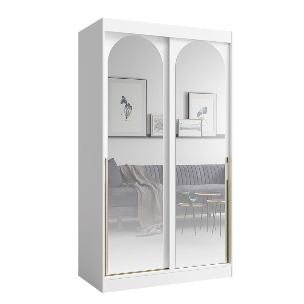 Szafa MODIN Szerokość 120 cm Przesuwna Dwudrzwiowa Biała Lustro Półki Drążek