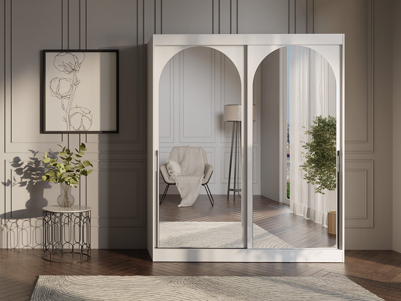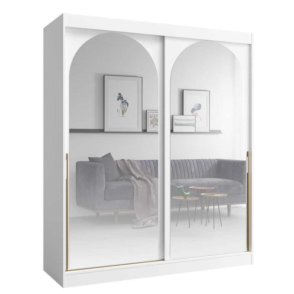 Szafa MODIN Szerokość 180 cm Przesuwna Dwudrzwiowa Biała Lustro Półki Drążek