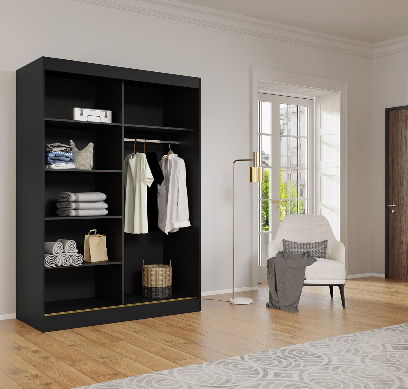 Pojemna szafa do sypialni powinna pomieścić wszystkie ubrania, a jednocześnie być łatwa w użytkowaniu. Szafa ubraniowa MODIN spełnia te wymagania, oferując zarówno przestrzeń na wieszaki, jak i wygodne półki. Można ją także z powodzeniem wykorzystać w salonie, tworząc elegancką i funkcjonalną przestrzeń do przechowywania.