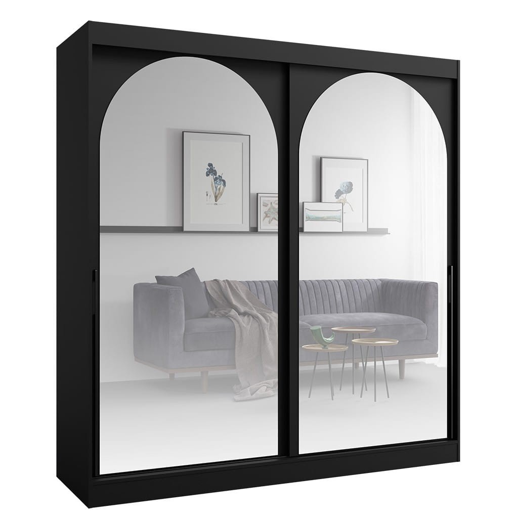 Szafa MODIN Szerokość 200 cm Przesuwna Dwudrzwiowa Czarna Lustro Półki Drążek