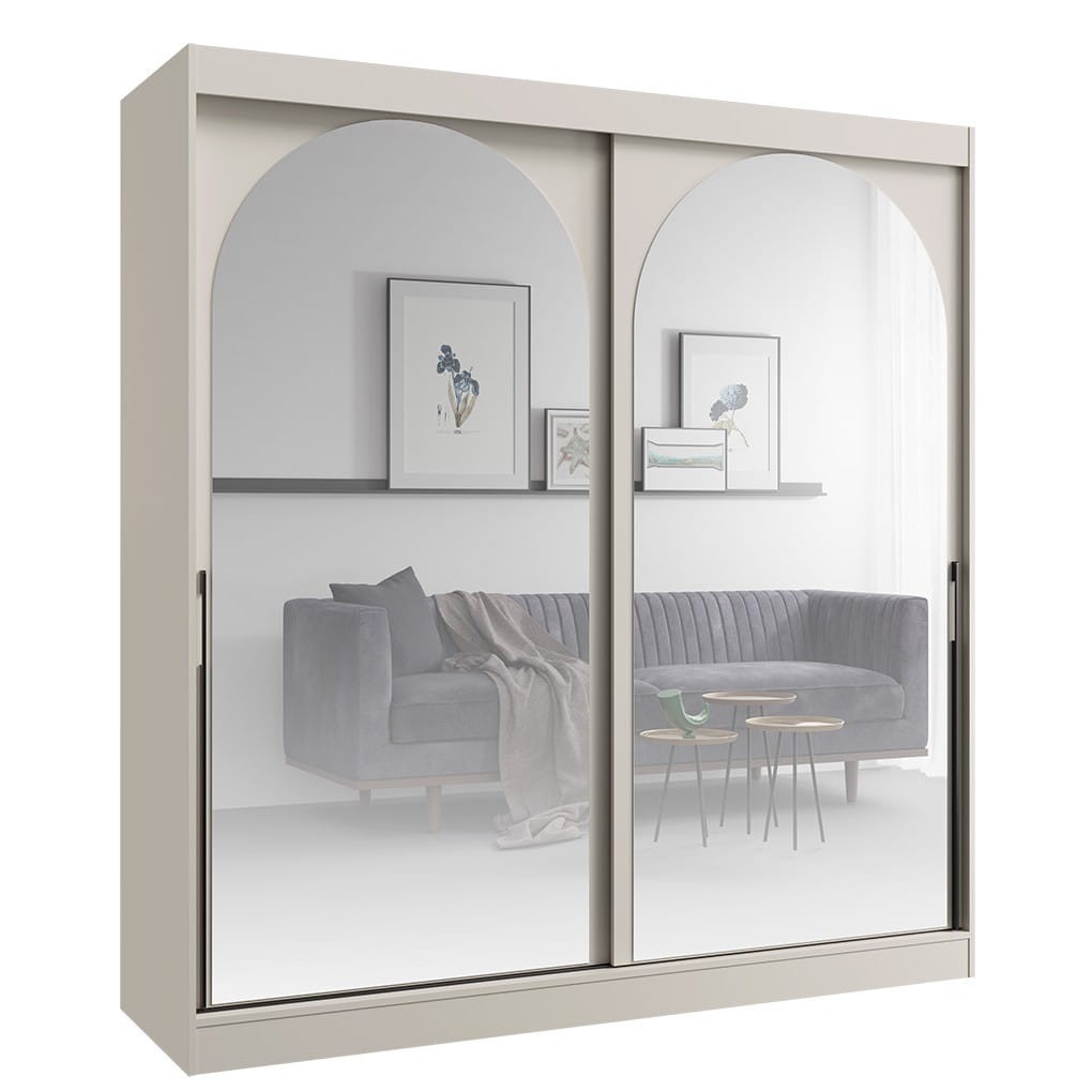 Szafa MODIN Szerokość 200 cm Przesuwna Dwudrzwiowa Kaszmirowa Lustro Półki Drążek