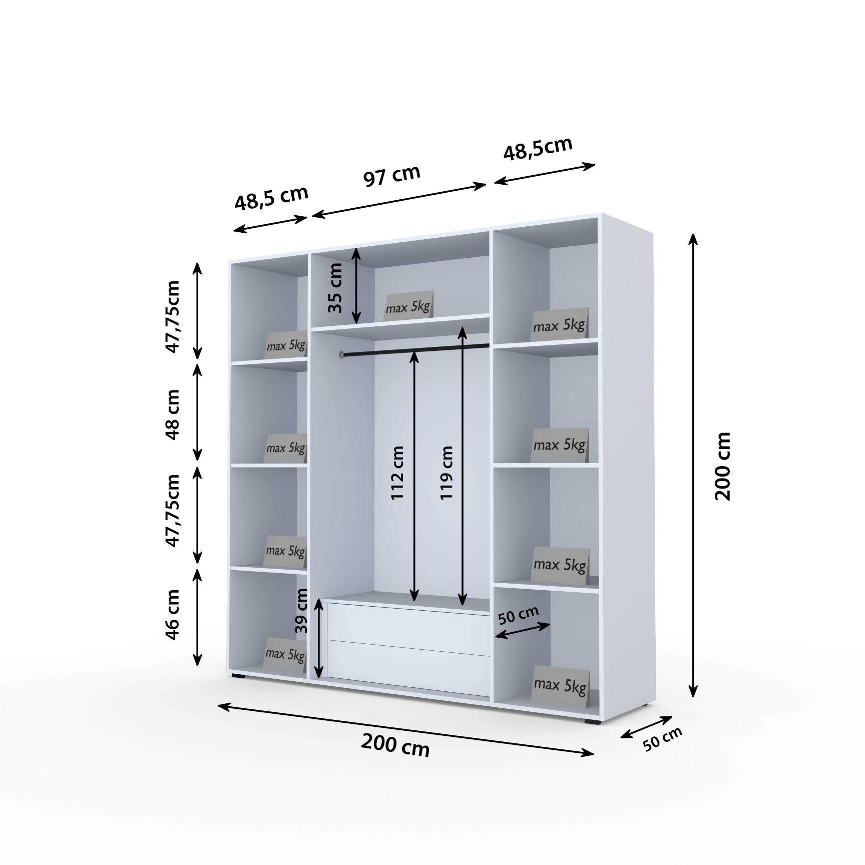 - W zestawie są półki i drążki na ubrania wiszące - możliwość zamontowania z półkami lub drążkiem wg zdjęć