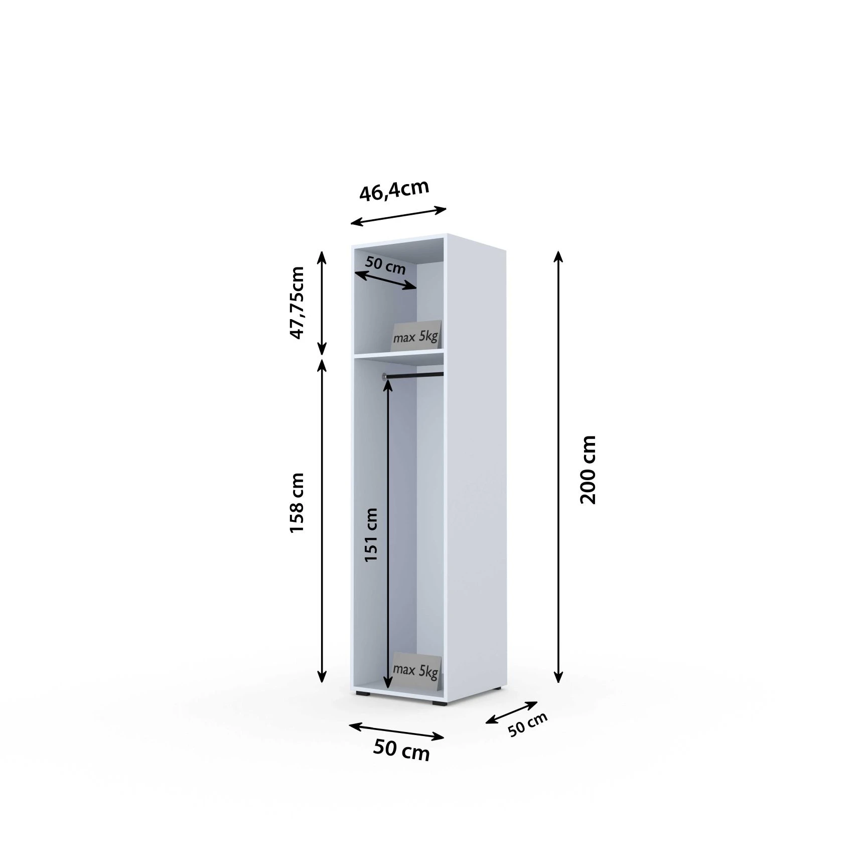 - W zestawie są półki i drążki na ubrania wiszące - możliwość zamontowania z półkami lub drążkiem wg zdjęć