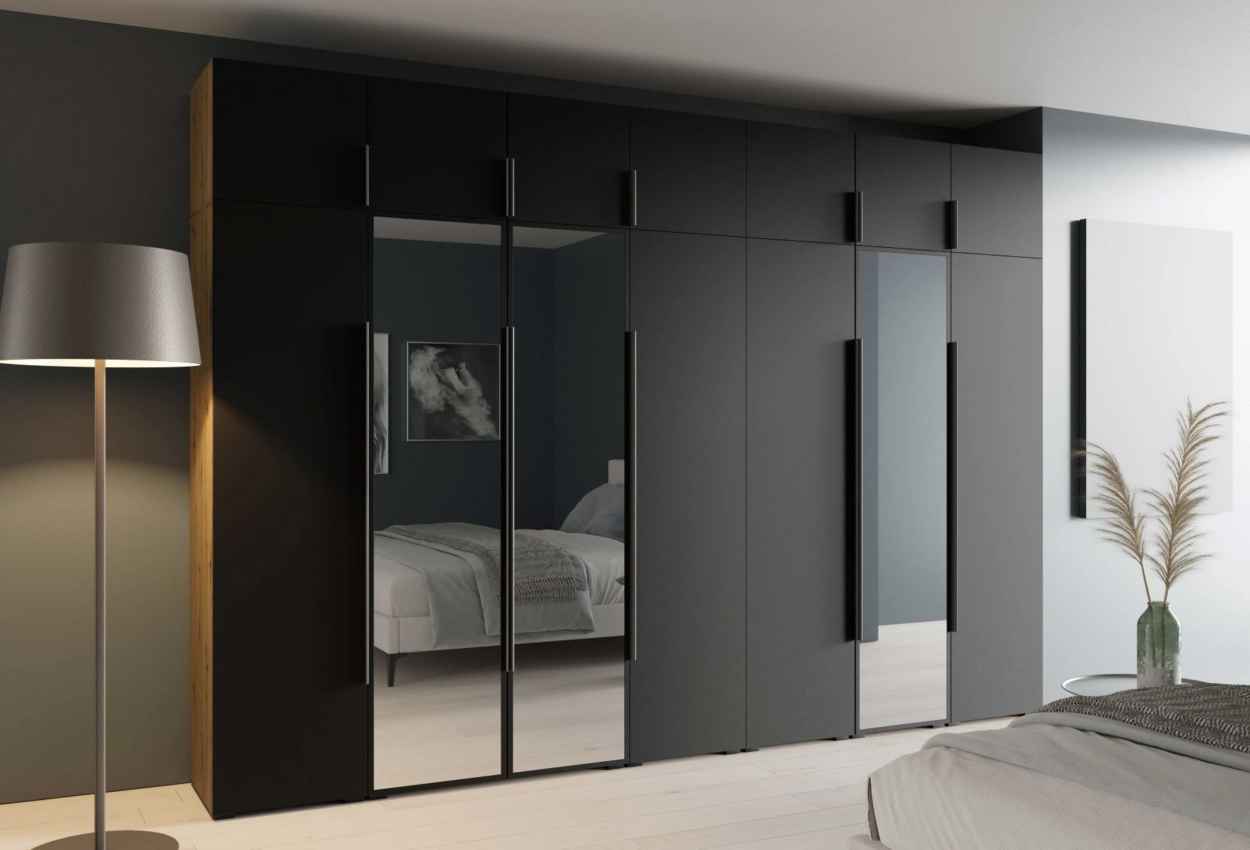 Szafa Modułowa ALEX 350 cm Czarny Mat Gładkie Fronty z Lustrem Garderoba
