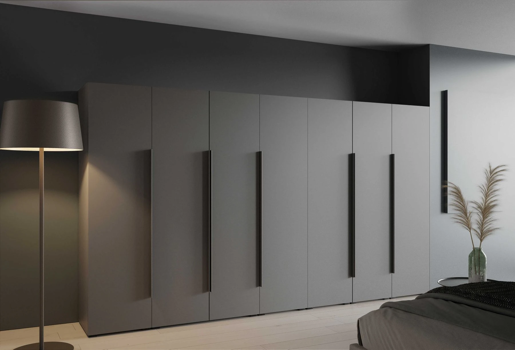 Wybór systemu ALEX to inwestycja w estetykę, która nie wyjdzie z mody przez lata. Fronty gładkie w połączeniu z szeroką paletą barw oraz opcjonalnym oświetleniem LED tworzą spójną i elegancką całość. Ta szeroka zabudowa o wymiarze 350 cm nie tylko pomieści całą Twoją garderobę, ale dzięki nastrojowemu blaskowi listew LED stanie się główną dekoracją sypialni. Wysoka jakość wykonania sprawia, że szafa otwierana ALEX to serce domu.
