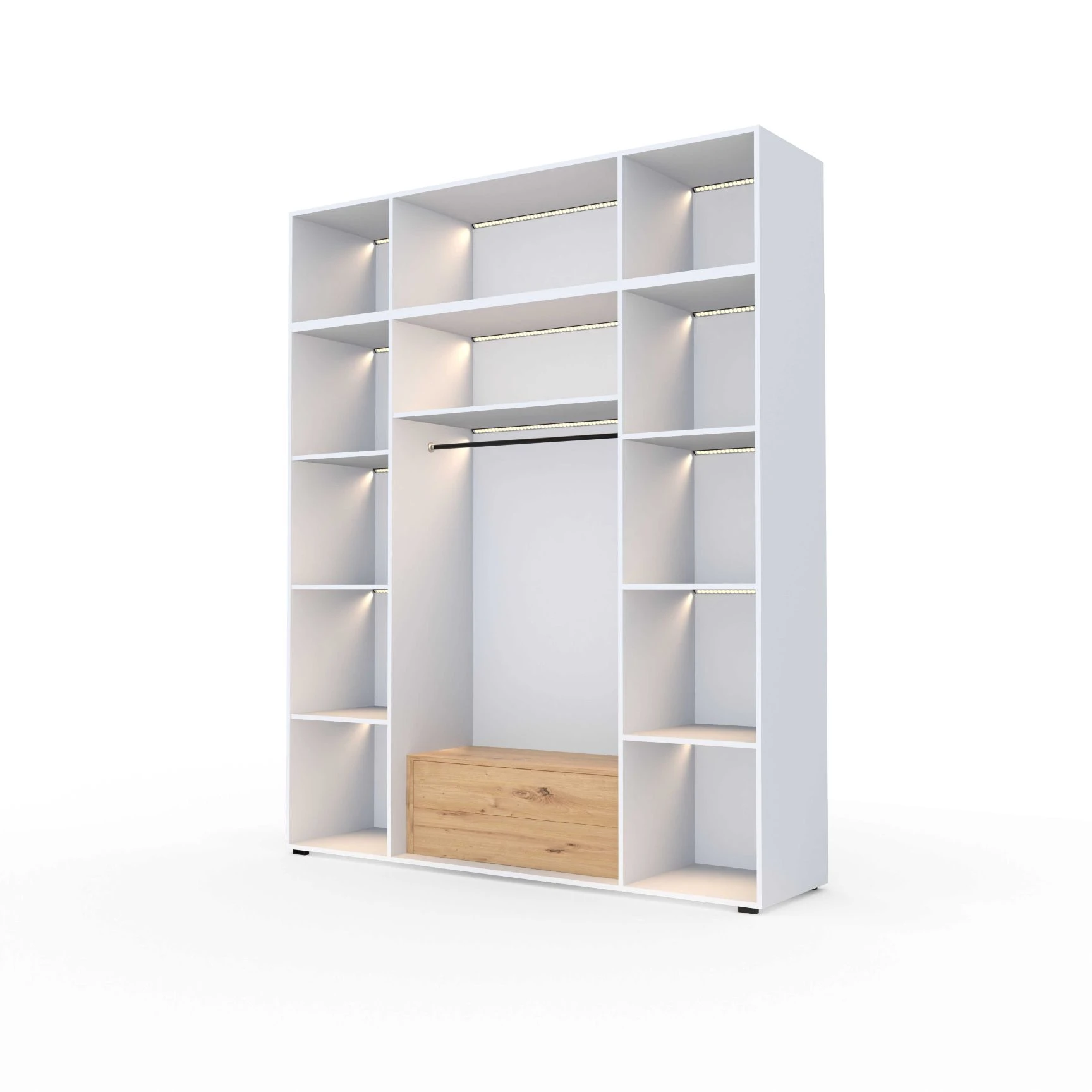 Nowoczesna szafa modułowa ALEX stawia na Twój codzienny komfort. Zamiast tradycyjnych uchwytów, możesz dobrać innowacyjny system Push To Open, który pozwala na otwieranie frontów delikatnym naciśnięciem, zachowując przy tym minimalistyczny wygląd mebla. Wnętrze szafy możesz wzbogacić o dodatkowe szuflady z pełnym wysuwem oraz nowoczesną listwę LED z wygodnym włącznikiem nożnym, co pozwoli na perfekcyjną organizację ubrań.