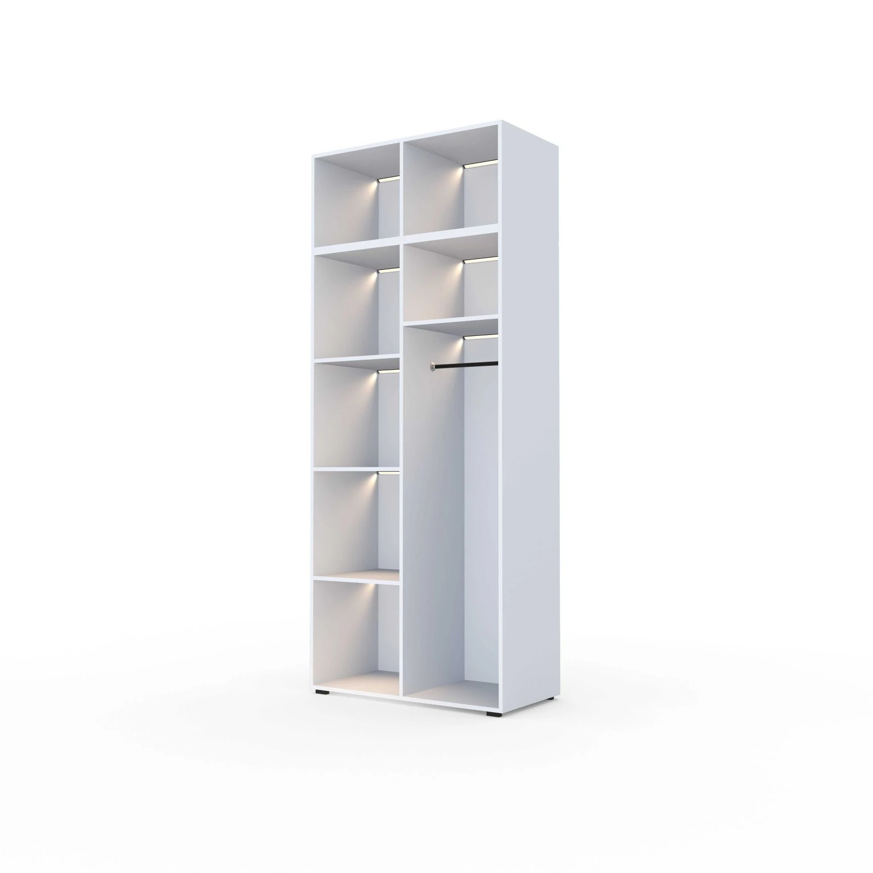 Nowoczesna szafa modułowa ALEX stawia na Twój codzienny komfort. Zamiast tradycyjnych uchwytów, możesz dobrać innowacyjny system Push To Open, który pozwala na otwieranie frontów delikatnym naciśnięciem, zachowując przy tym minimalistyczny wygląd mebla. Wnętrze szafy możesz wzbogacić o dodatkowe szuflady z pełnym wysuwem oraz nowoczesną listwę LED z wygodnym włącznikiem nożnym, co pozwoli na perfekcyjną organizację ubrań.