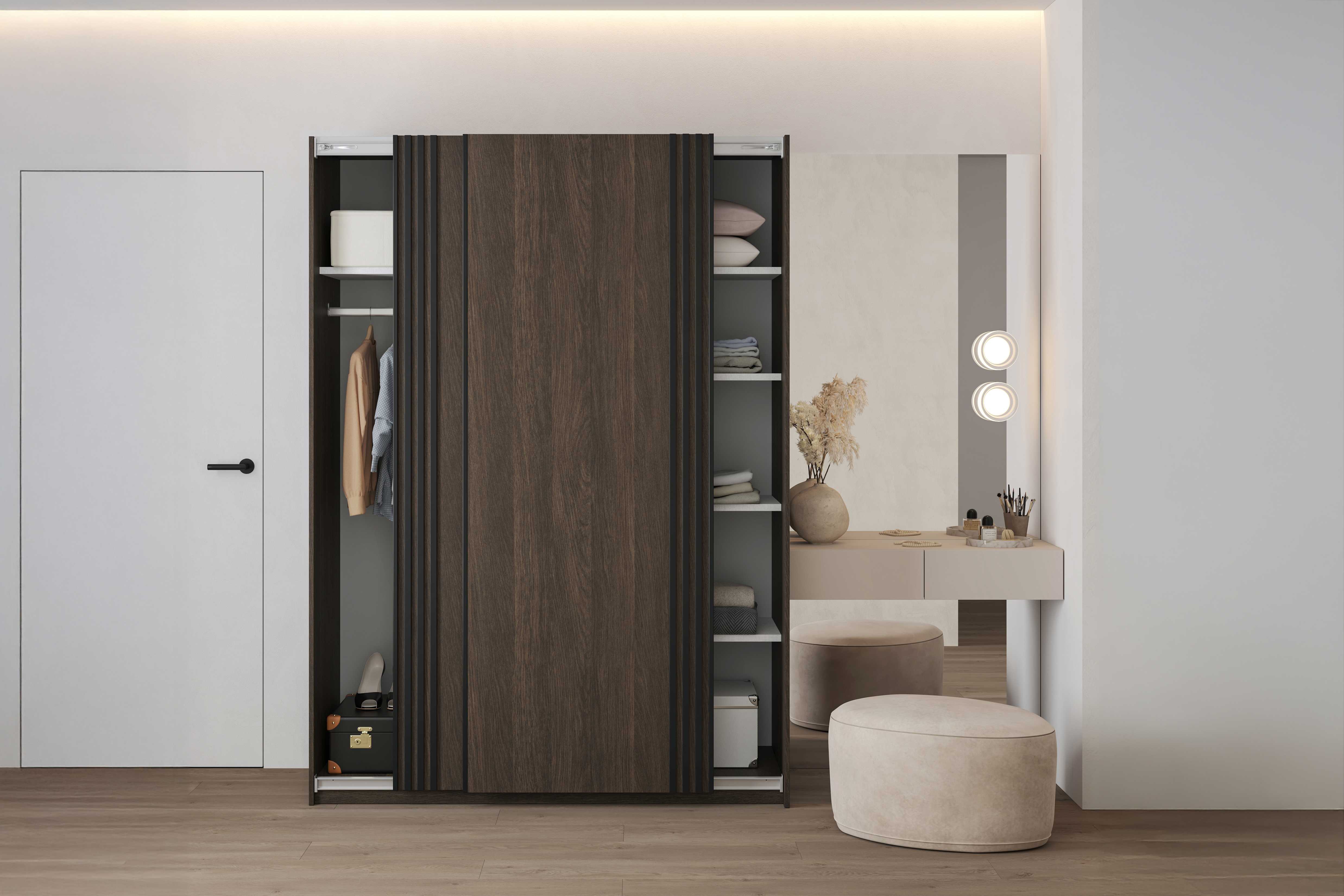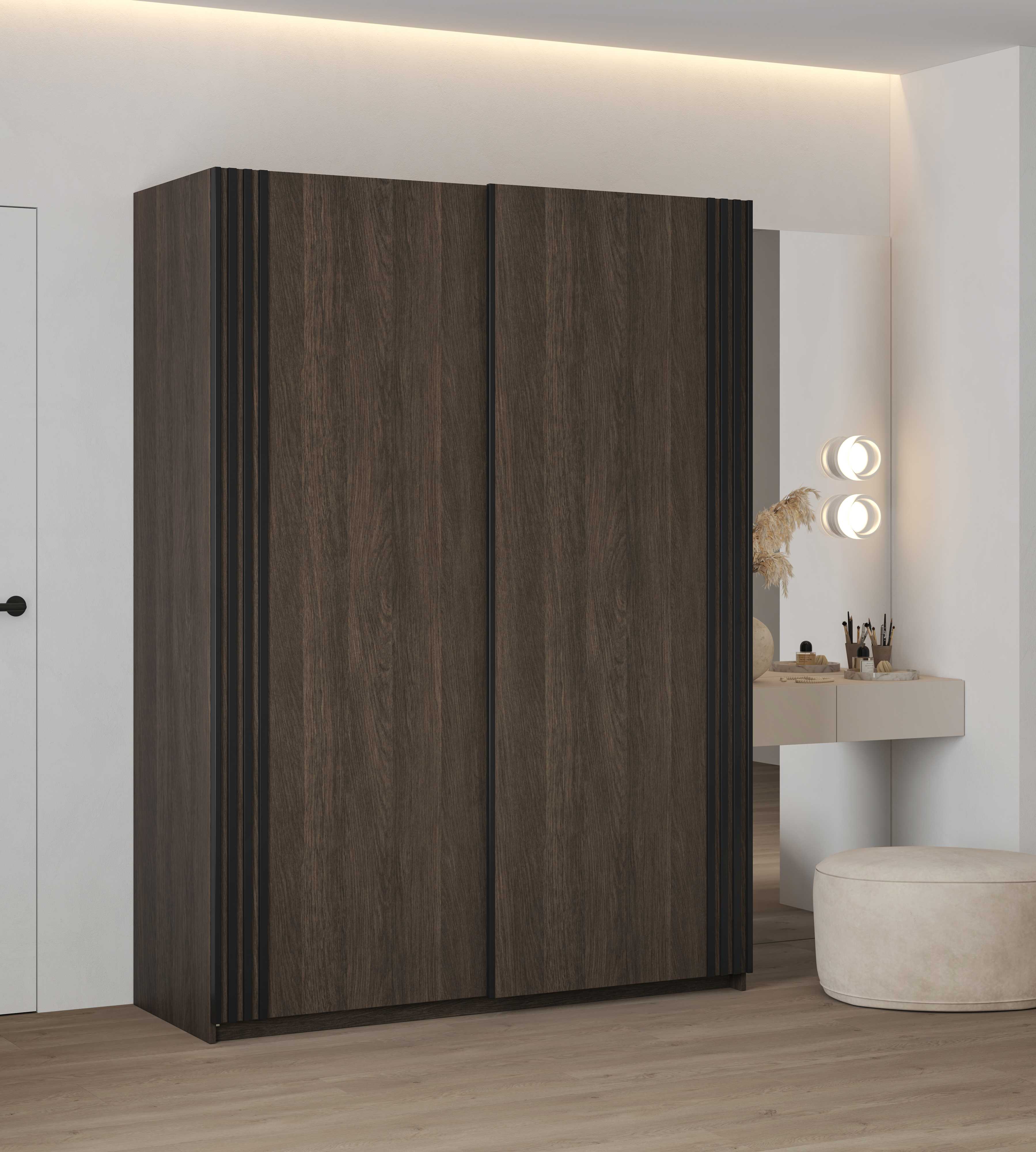Połączenie lameli na froncie, przesuwnego systemu drzwi oraz dużej pojemności sprawia, że szafa NIVA jest meblem, który wyróżnia się nie tylko wyglądem, ale i funkcjonalnością. To doskonały wybór do nowoczesnych sypialni, garderób i pokoi młodzieżowych.