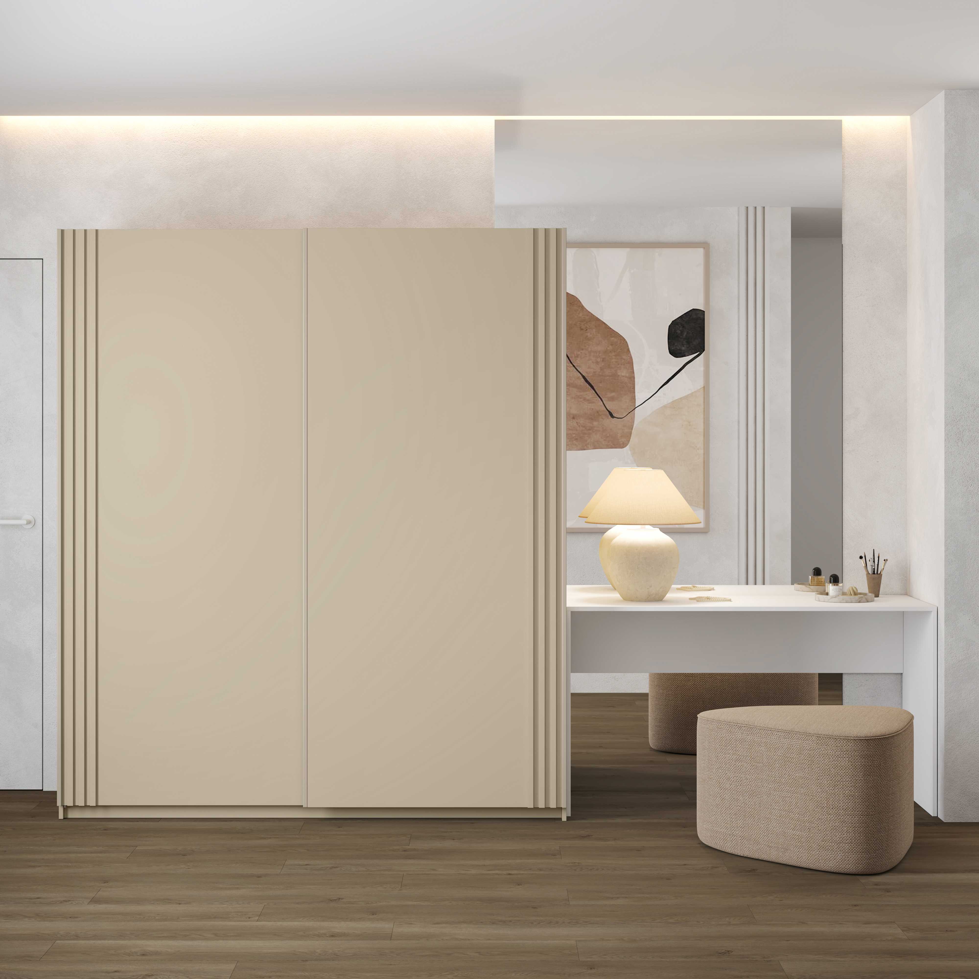 Szafa NIVA Szerokość 180 cm Jasny Beż Przesuwna Dwudrzwiowa Lamele Nowoczesna Helvetia Meble 2412OE16