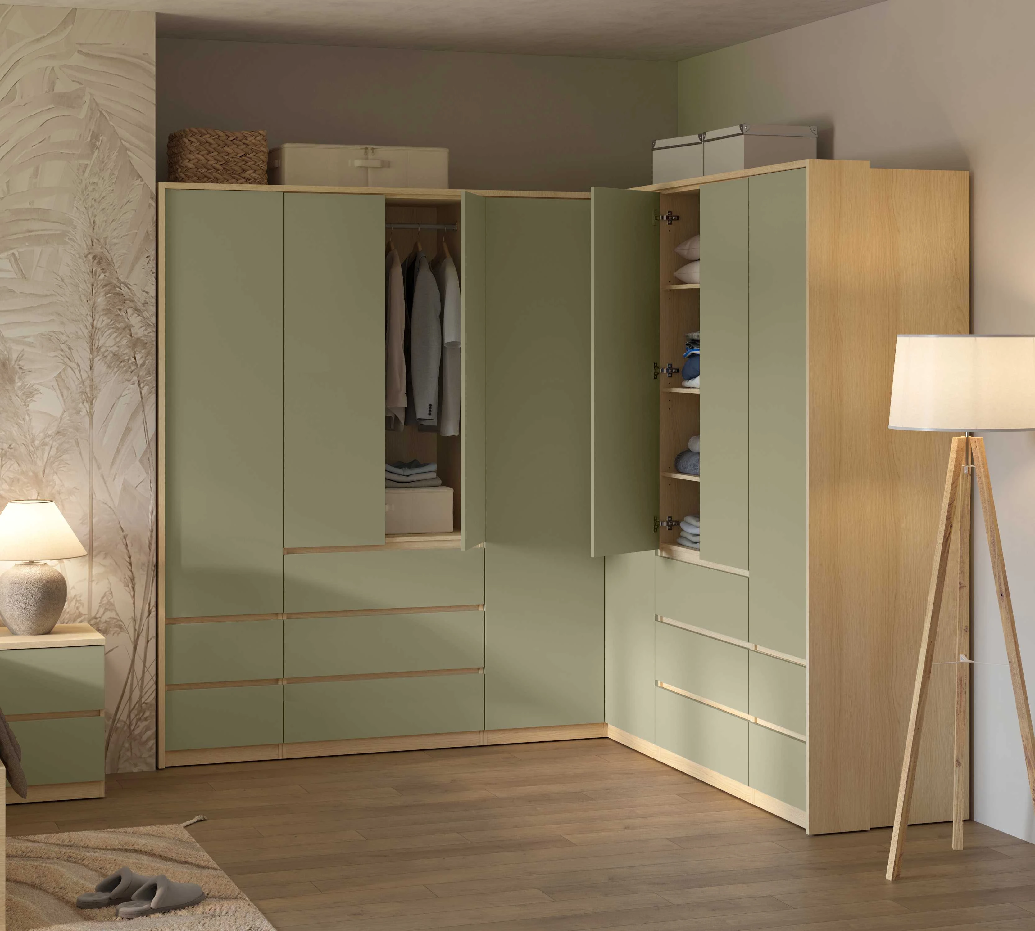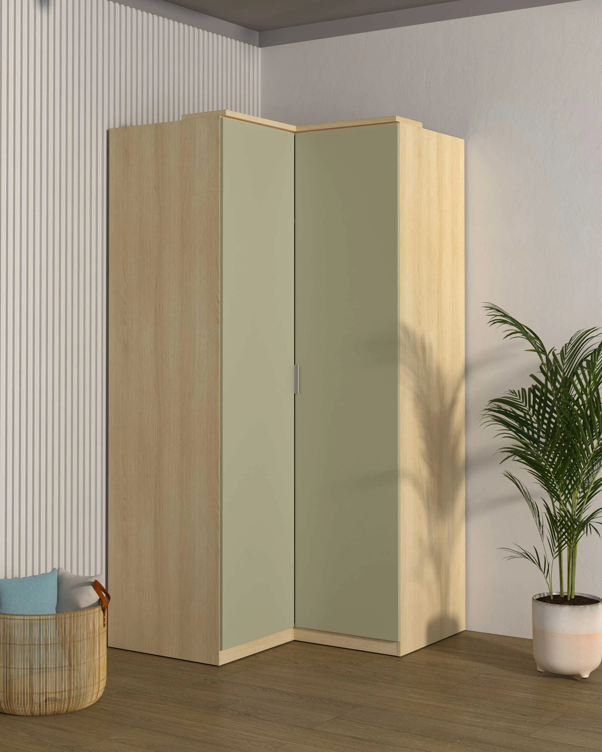 Szafa Narożna Szerokość 109 cm Dąb Lindberg + Eukaliptus TERRA Helvetia Meble 24LEON16