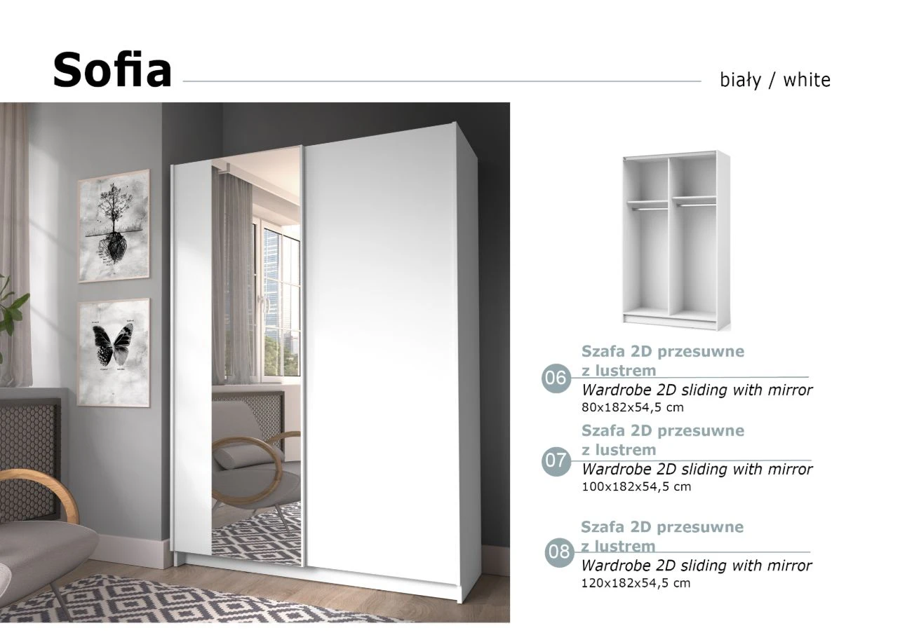 Szafa Przesuwna 120 cm Biała z Lustrem Garderoba do Sypialni SOFIA