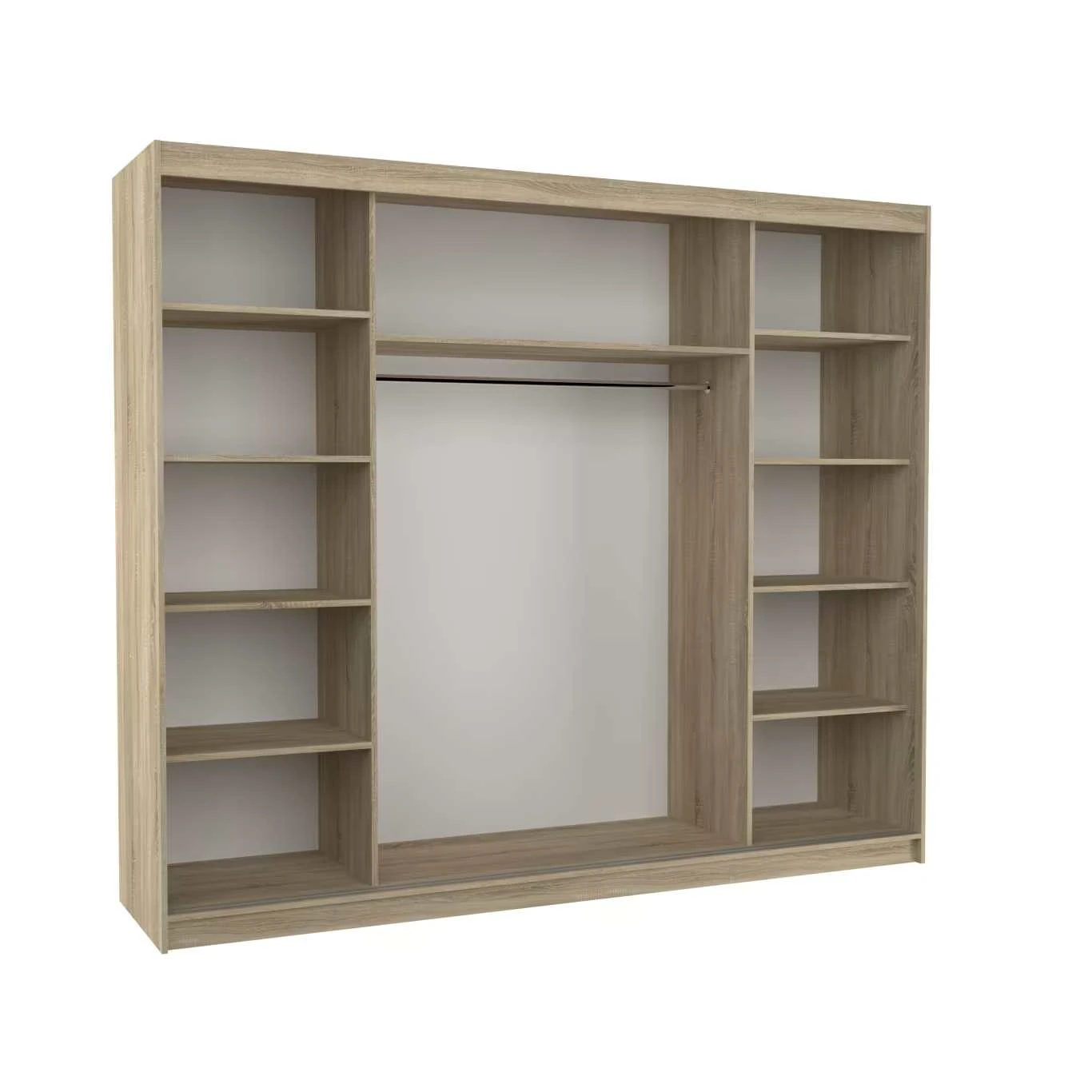 Ten szafa o mocnym charakterze, która odmieni wygląd każdego pokoju. Ta szafa do sypialni oferuje rekordową pojemność, pozwalając na swobodne ułożenie ubrań na solidnych półkach oraz ich powieszenie na mocnych drążkach. Szerokość 250 cm daje pewność, że w Twoim domu zapanuje wymarzony porządek, a każda rzecz znajdzie swoje stałe miejsce.