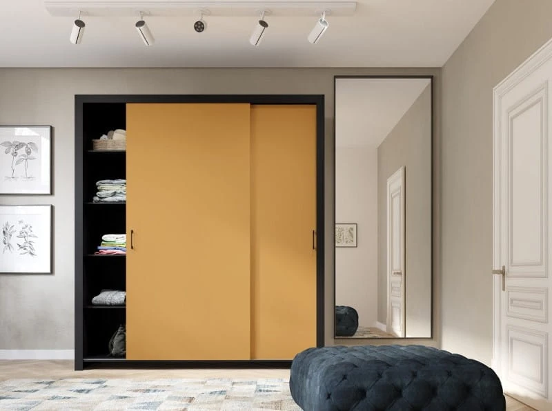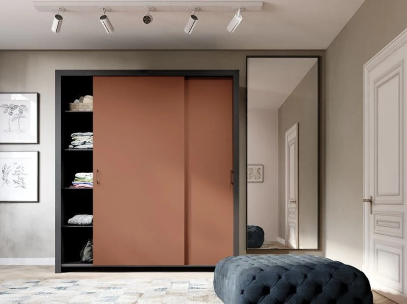 Szafa Frama dostępna jest w dwóch rozmiarach oraz w trzech kolorach: Dymiona Zieleń, Toffee oraz Głębia Sahary.