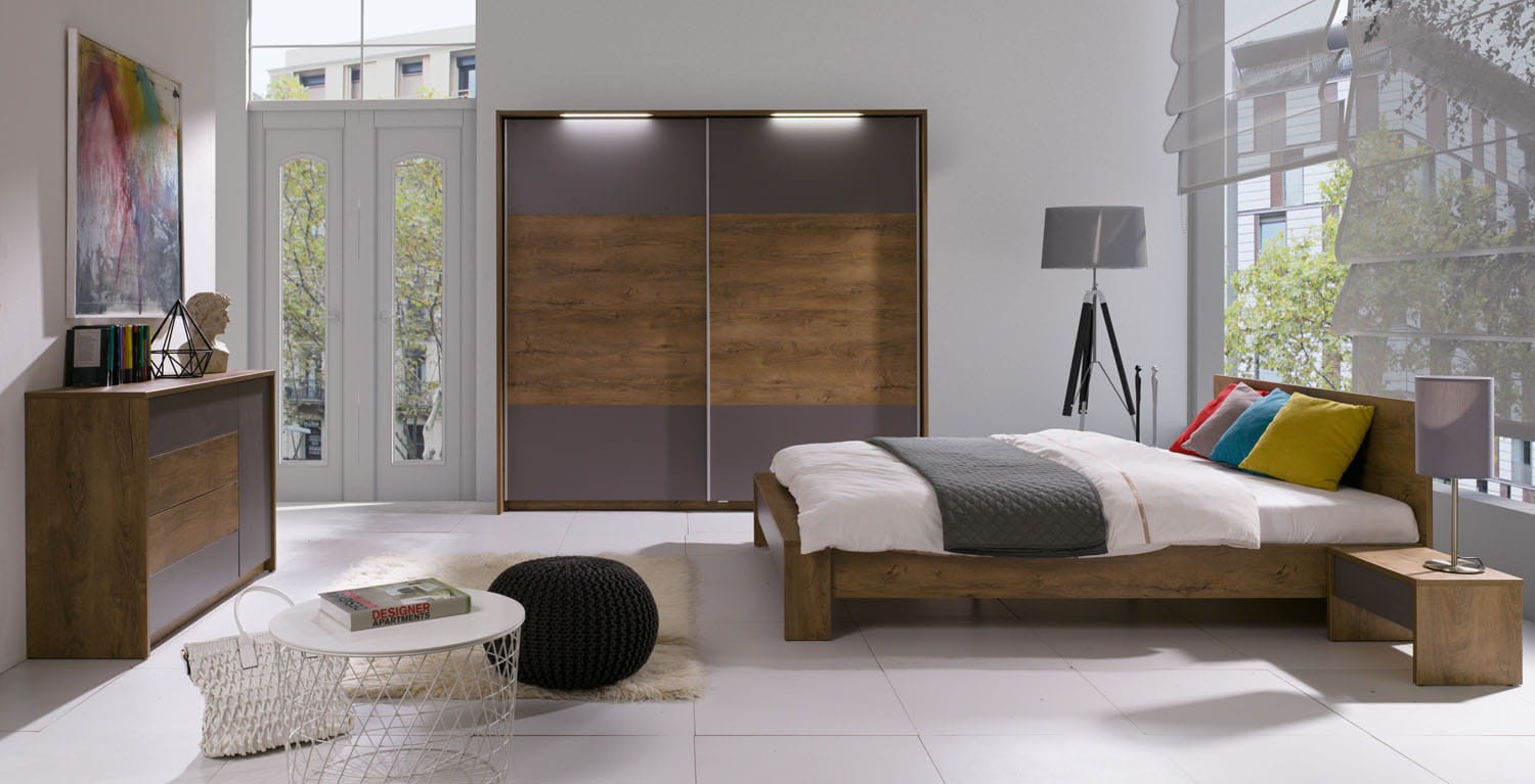 System Latika dzięki bogatej kolorystyce odnajdzie swoje zastosowanie w wielu sypialniach, dąb burgundzki w połączeniu z neutralną bielą lub szarym, oraz dąb riviera w połączeniu z białym.