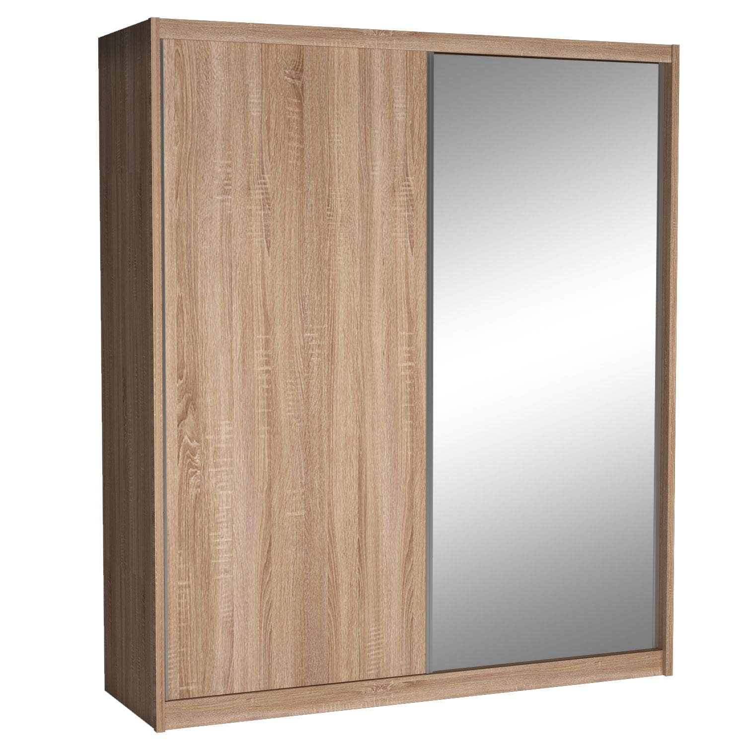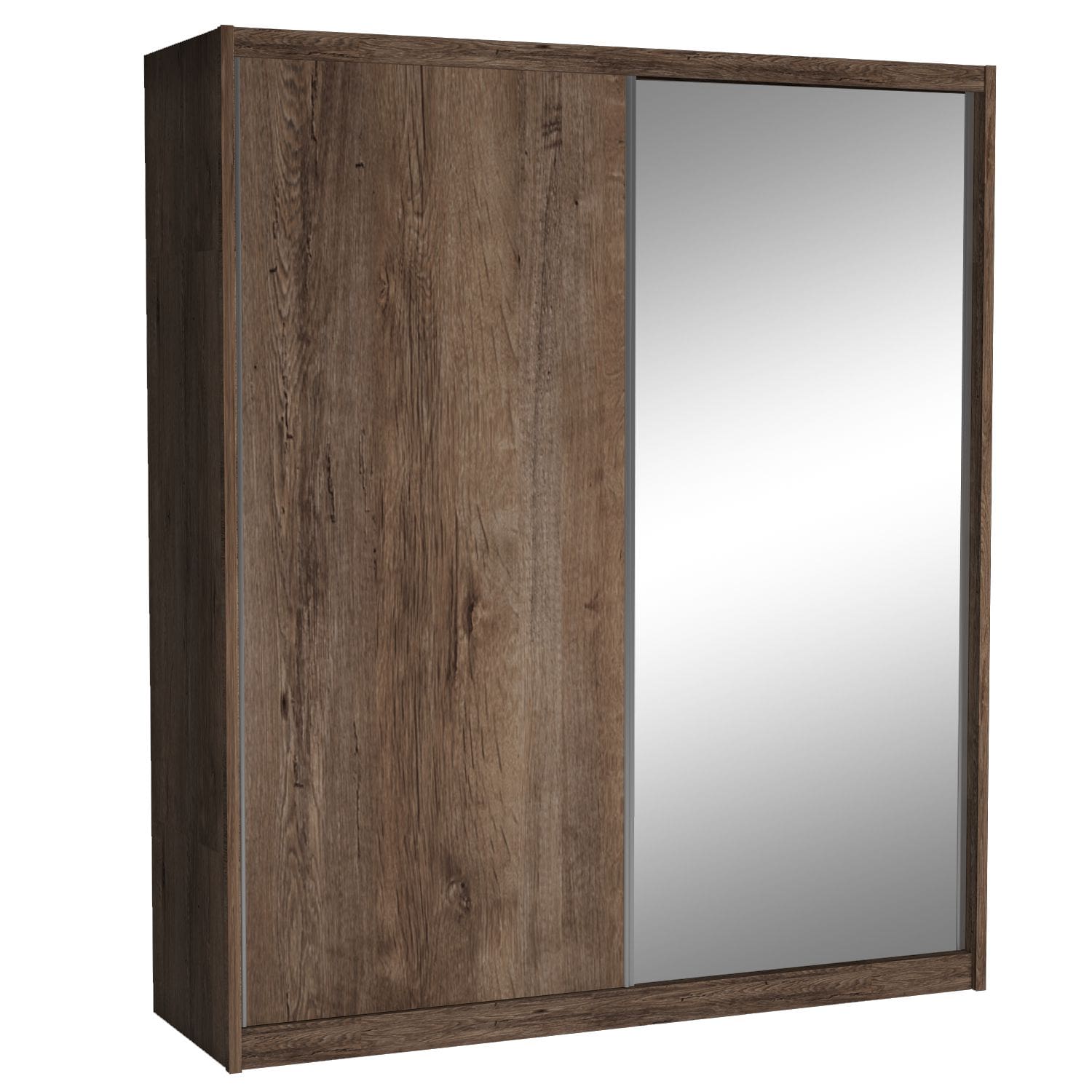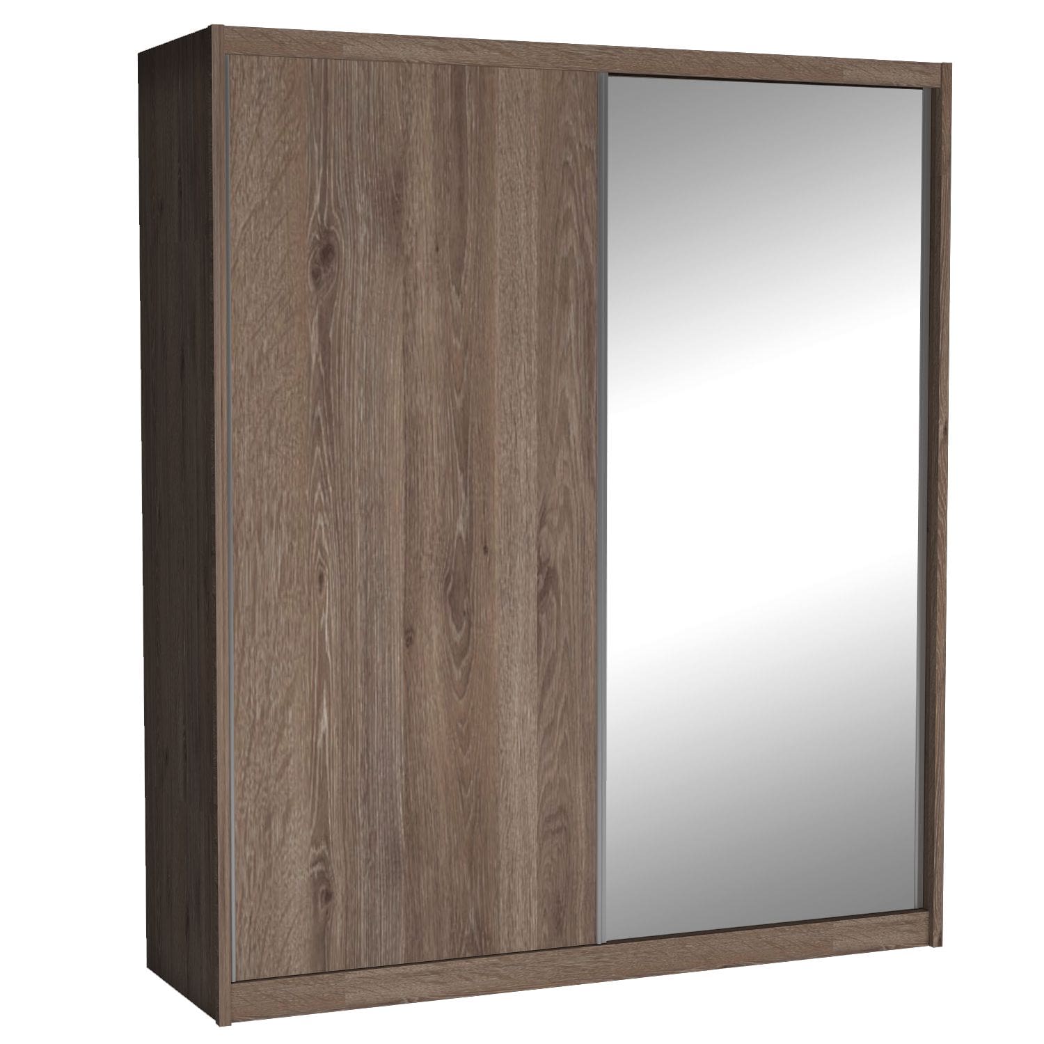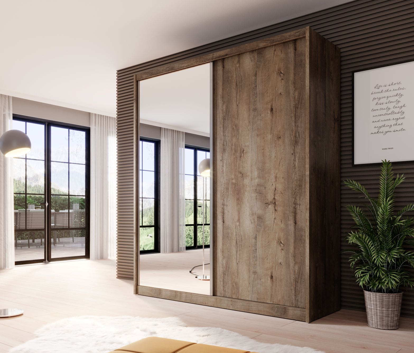 Szafa Przesuwna MIKI Wysoka 240 cm Szerokość 208 cm Lustro Dąb Lefkas Ciemny