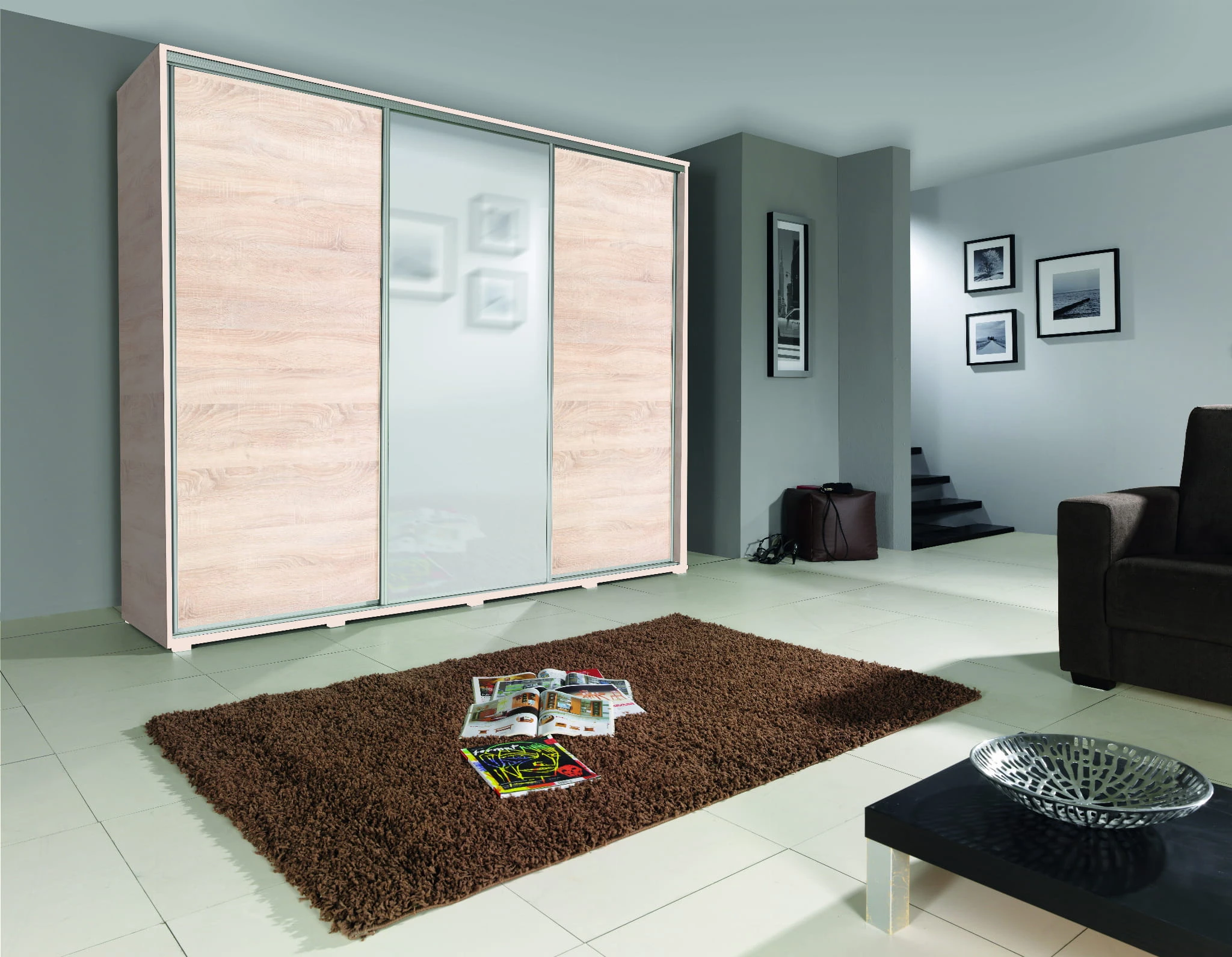 Aluminiowe profile boczne, nóżki plastikowe, pojemna garderoba do sypialni.