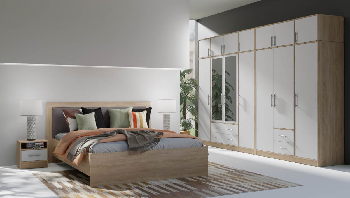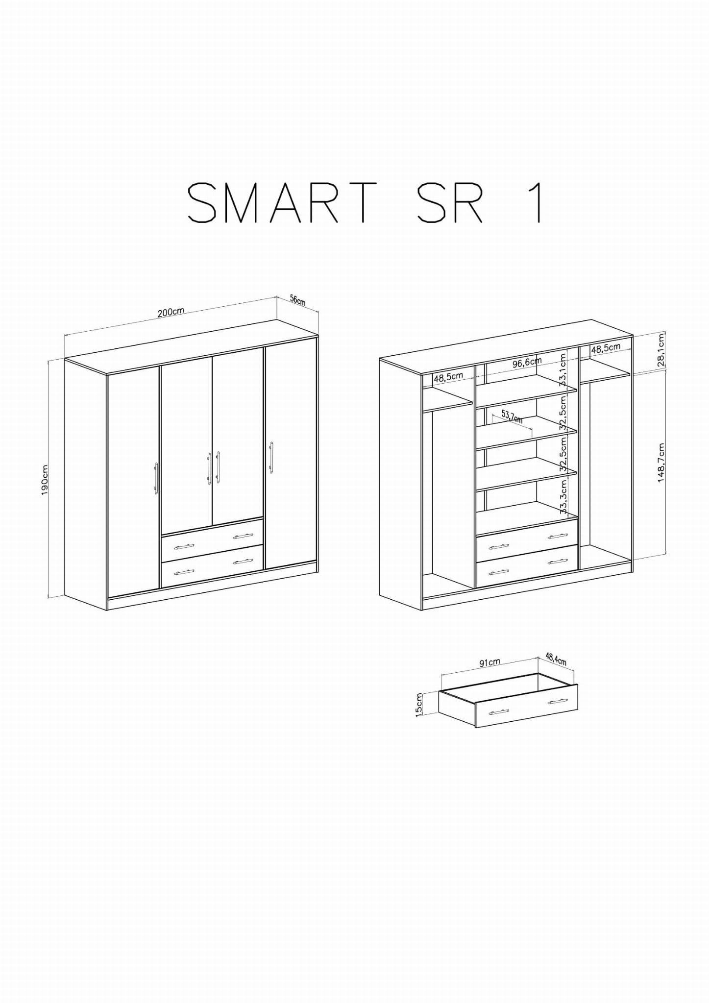 Szafa Smart Szerokość 200 cm biały lux / dąb sonoma Meblar SR1