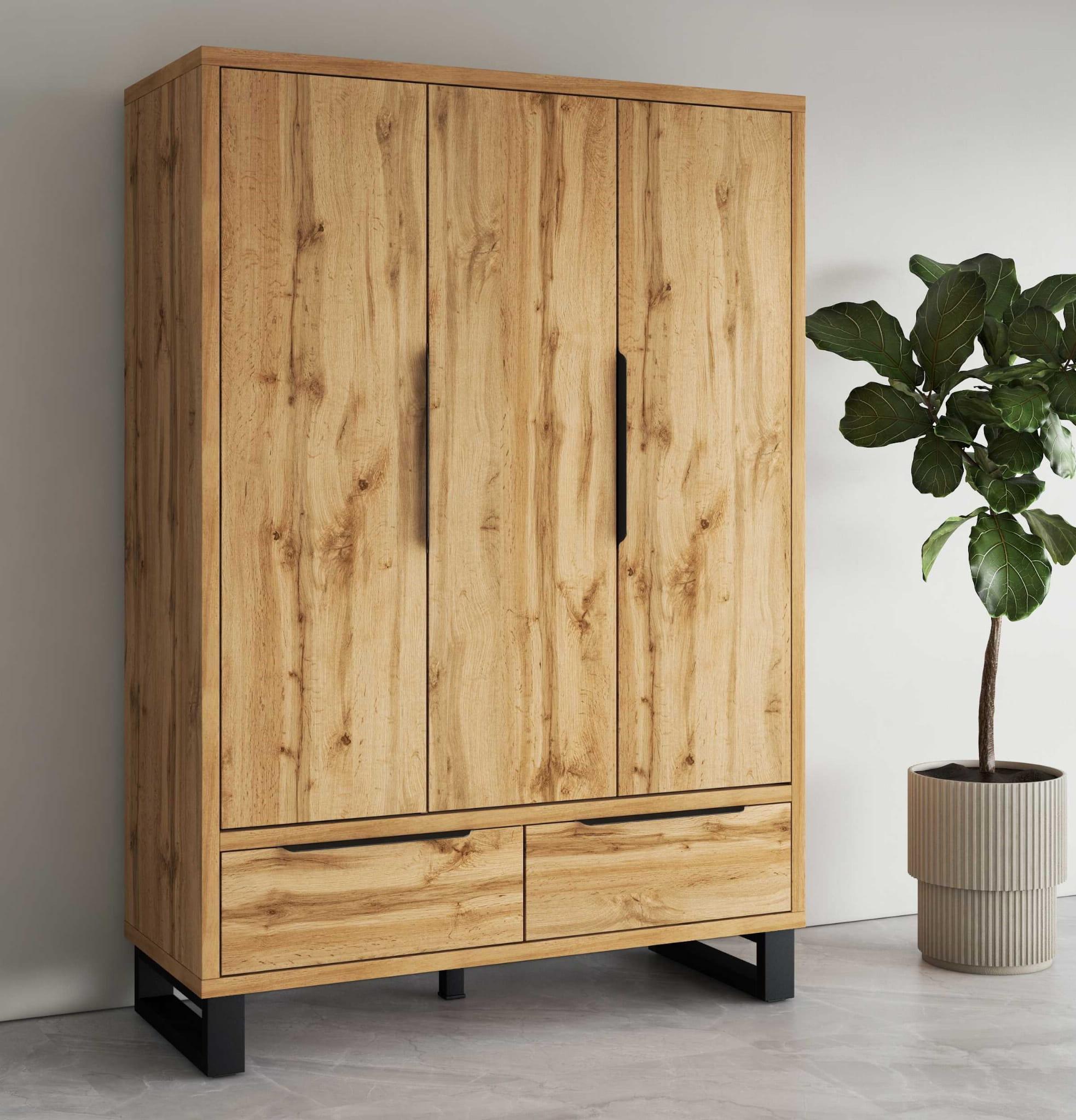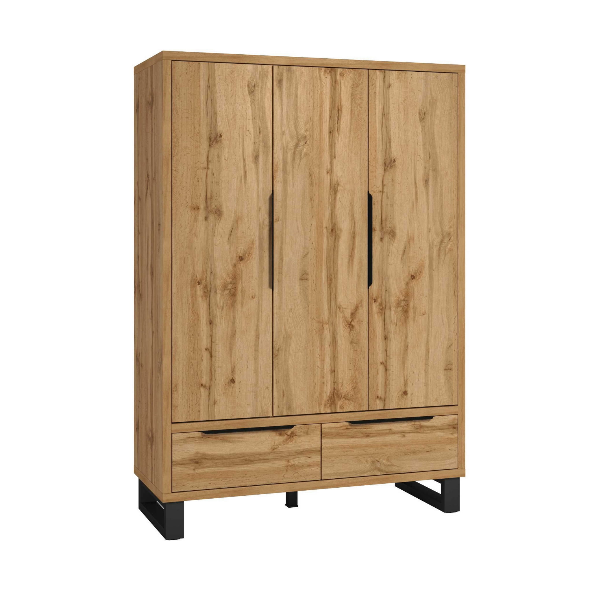 Szafa Trzydrzwiowa HALLE S Dąb Wotan Szerokość 145 cm 2-Szuflady Do Sypialni Styl LOFT Helvetia 24N0NG19