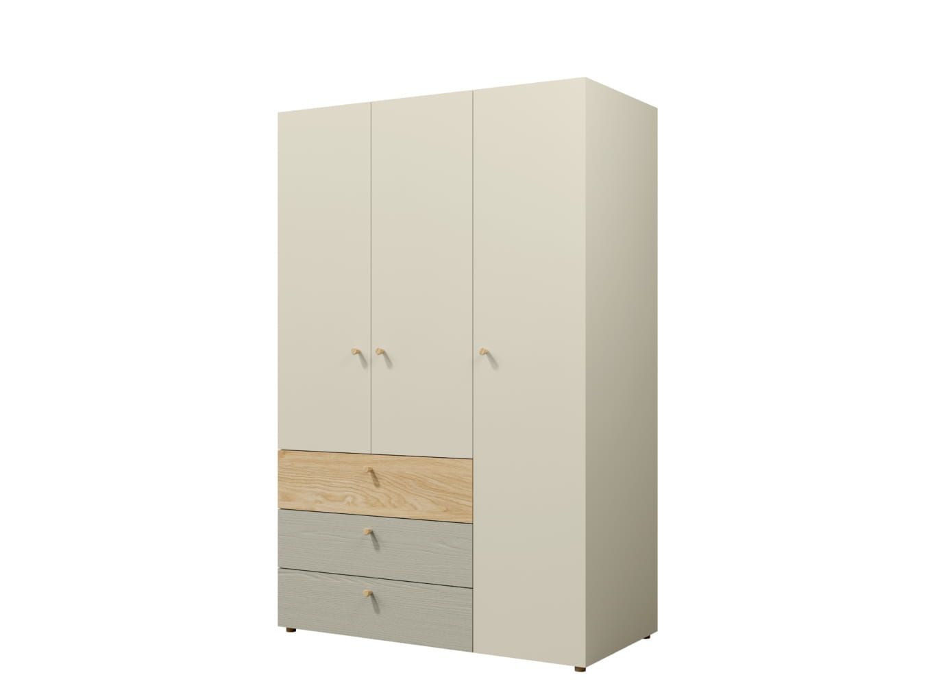 Szafa Trzydrzwiowa YUKI 1 Młodzieżowa Szerokość 120 cm Szarobeżowa + Dąb Olejowany + Eukaliptus 3-Szuflady Jurek Meble