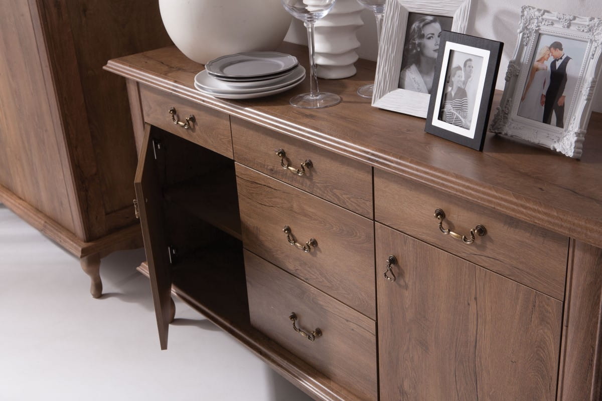 Inspirowany stylem prowansalskim i rustykalnym, system mebli pokojowych Diana kojarzy się z urokliwą Prowansją i pełnym słońca klimatem. Łagodne linie, klasyczne zdobienie w postaci frezowanych prostych listew i misternych uchwytów, stylizowane nóżki z litego drewna to cechy charakterystyczne dla tej kolekcji. Meble Diana utrzymane w stonowanej naturalnej kolorystyce dekoru drewna są pełne niewymuszonej elegancji i ciepłego uroku. Jeżeli marzysz o przytulnym i gościnnym wnętrzu, w którym dominuje naturalność i spokój kolekcja mebli Diana będzie świetnym wyborem.