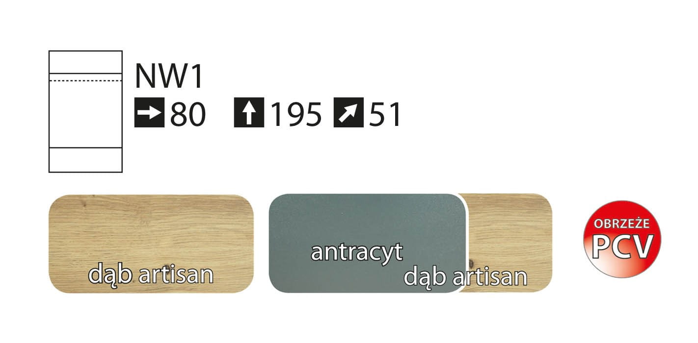 System mebli Newada jest dostępny w dwóch kolorach: dąb artisan oraz antracyt + dąb artisan. Ciepły kolor dekoru dębu artisan wprowadzi do wnętrza przytulny klimat i jest dedykowany dla osób, które szukają mebli w kolorze drewna . Połączenie szarości i dekoru drewna to niebanalna kompozycja – meble będą świetnie prezentować się we wnętrzach minimalistycznych, industrialnych.