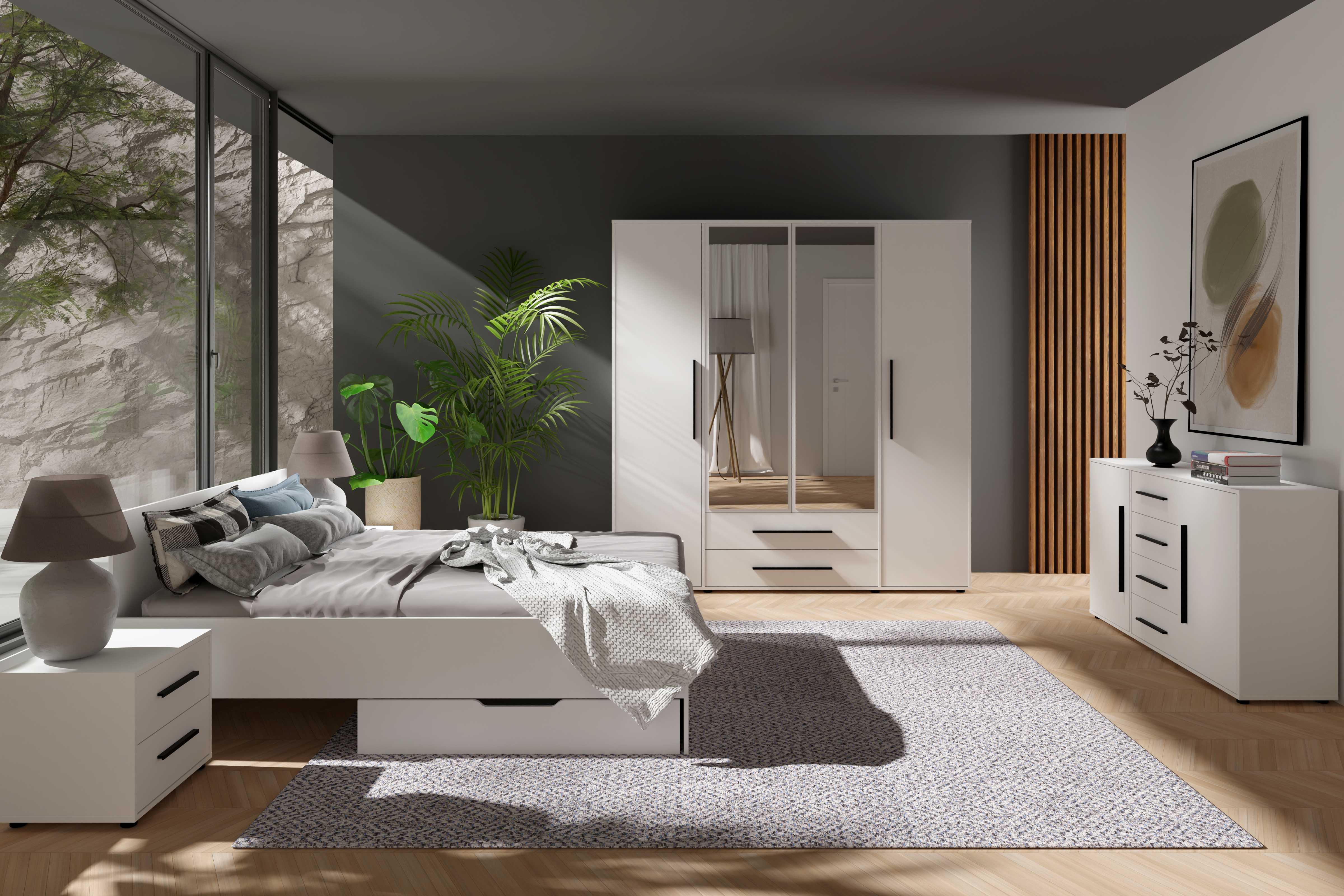 Funkcjonalna komoda z szufladami i drzwiczkami to idealne rozwiązanie do przechowywania ubrań, dokumentów czy domowych akcesoriów. Doskonale sprawdzi się zarówno w salonie, sypialni, jak i przedpokoju. Szafka RTV przestronna i praktyczna, z miejscem na sprzęt elektroniczny i akcesoria. Wprowadza porządek i estetykę do strefy relaksu. Stolik nocny kompaktowy i estetyczny, niezbędny przy łóżku. Pomieści lampkę nocną, książkę czy telefon, zachowując minimalistyczny wygląd. Wysoka szafa i regał zapewniają dużo miejsca na ubrania, dokumenty czy dekoracje. Idealne do sypialni, salonu lub pokoju młodzieżowego. Nowoczesne i wygodne łóżko z opcjonalnym pojemnym schowkiem, który pozwala sprytnie zorganizować pościel, sezonowe ubrania czy dodatki.