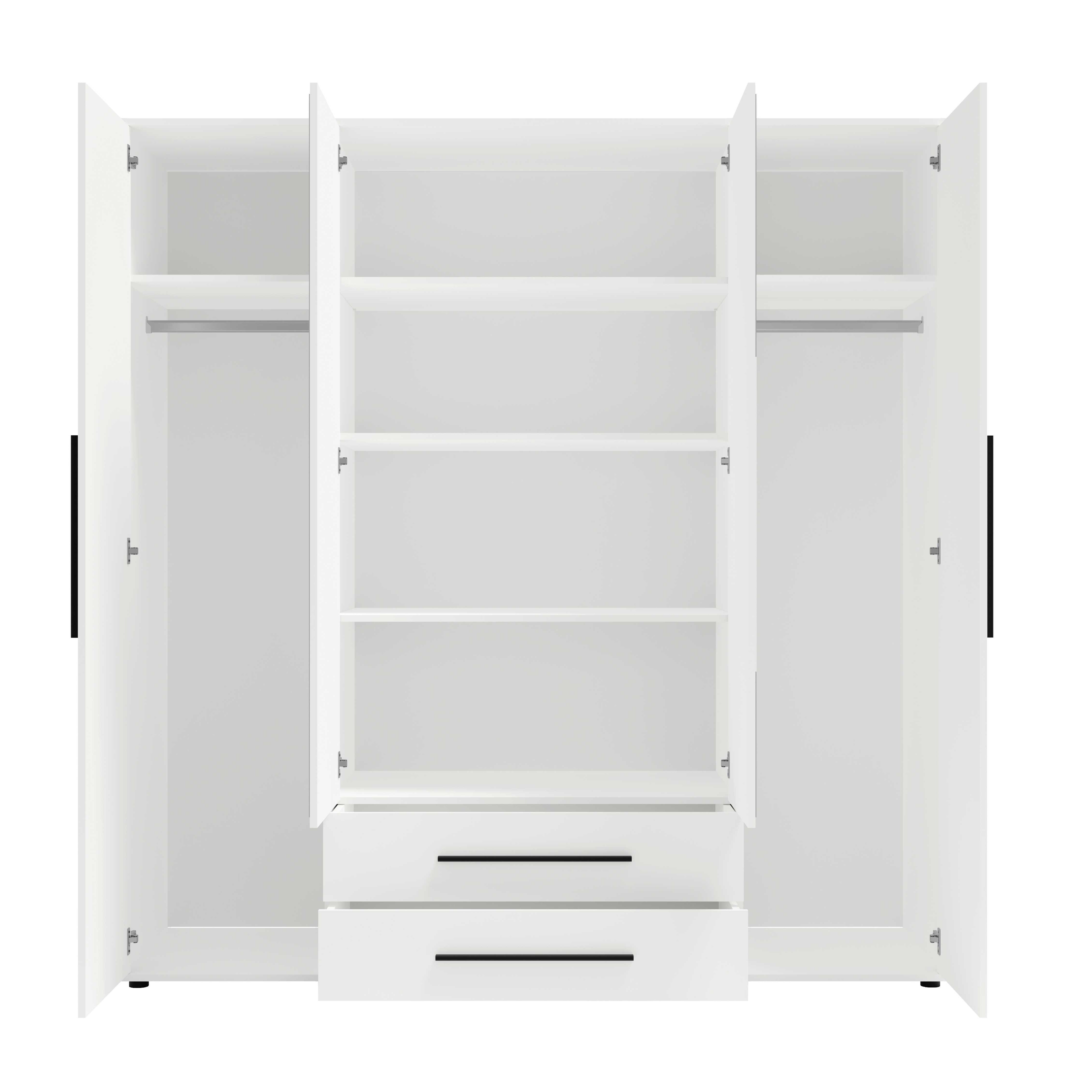 Szafa z Nadstawką MAXIONE MX-13 + MX-06 Szerokość 198 cm Biały Mat Lustro Otwierana Czarne Uchwyty Minimalistyczna