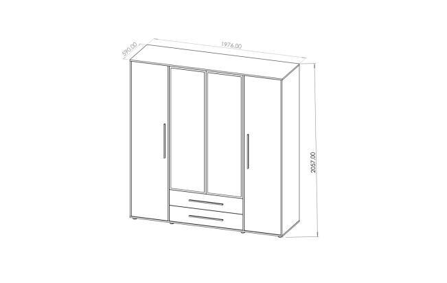 - 8x drzwi uchylne (2 środkowe z lustrem otwierane metodą "push to open")