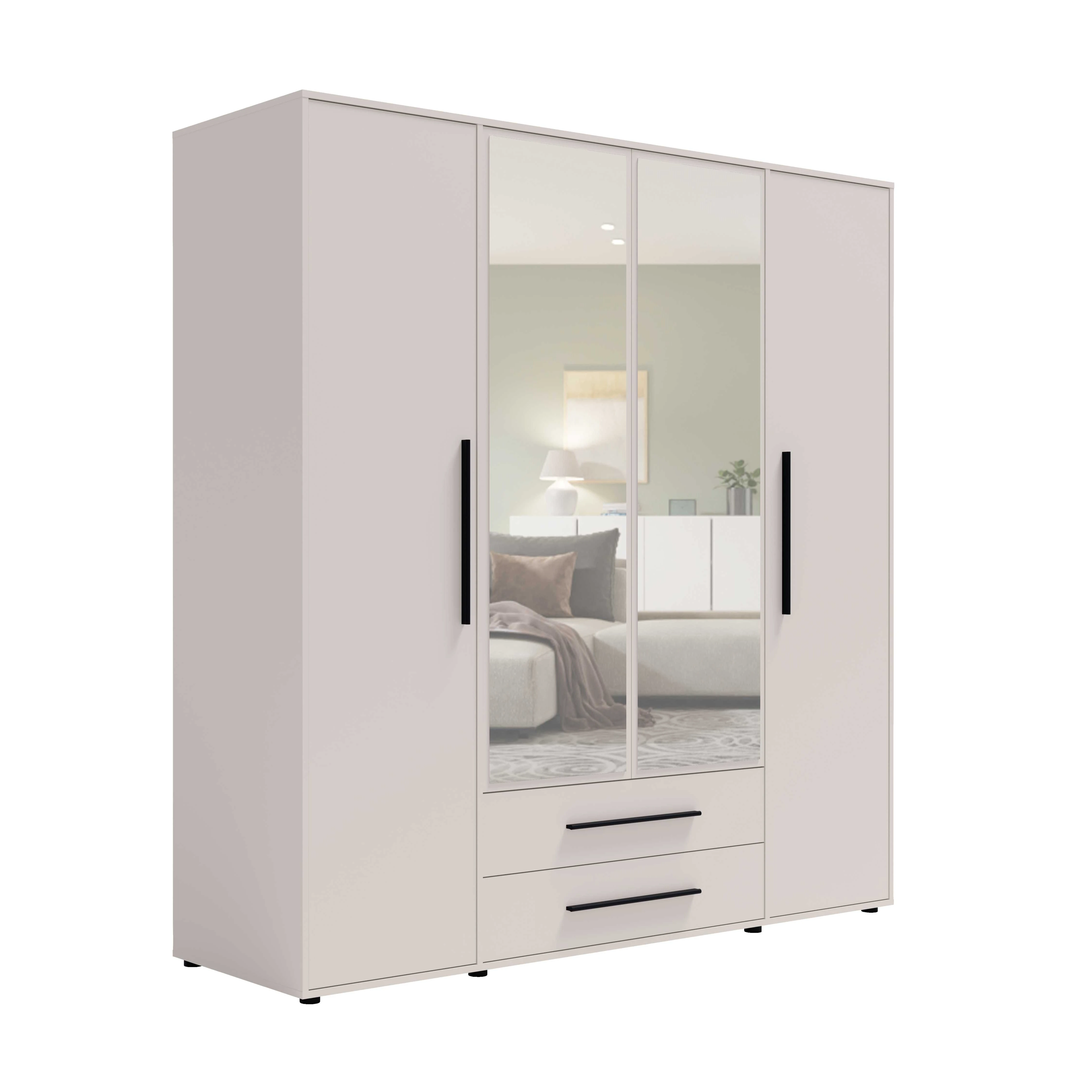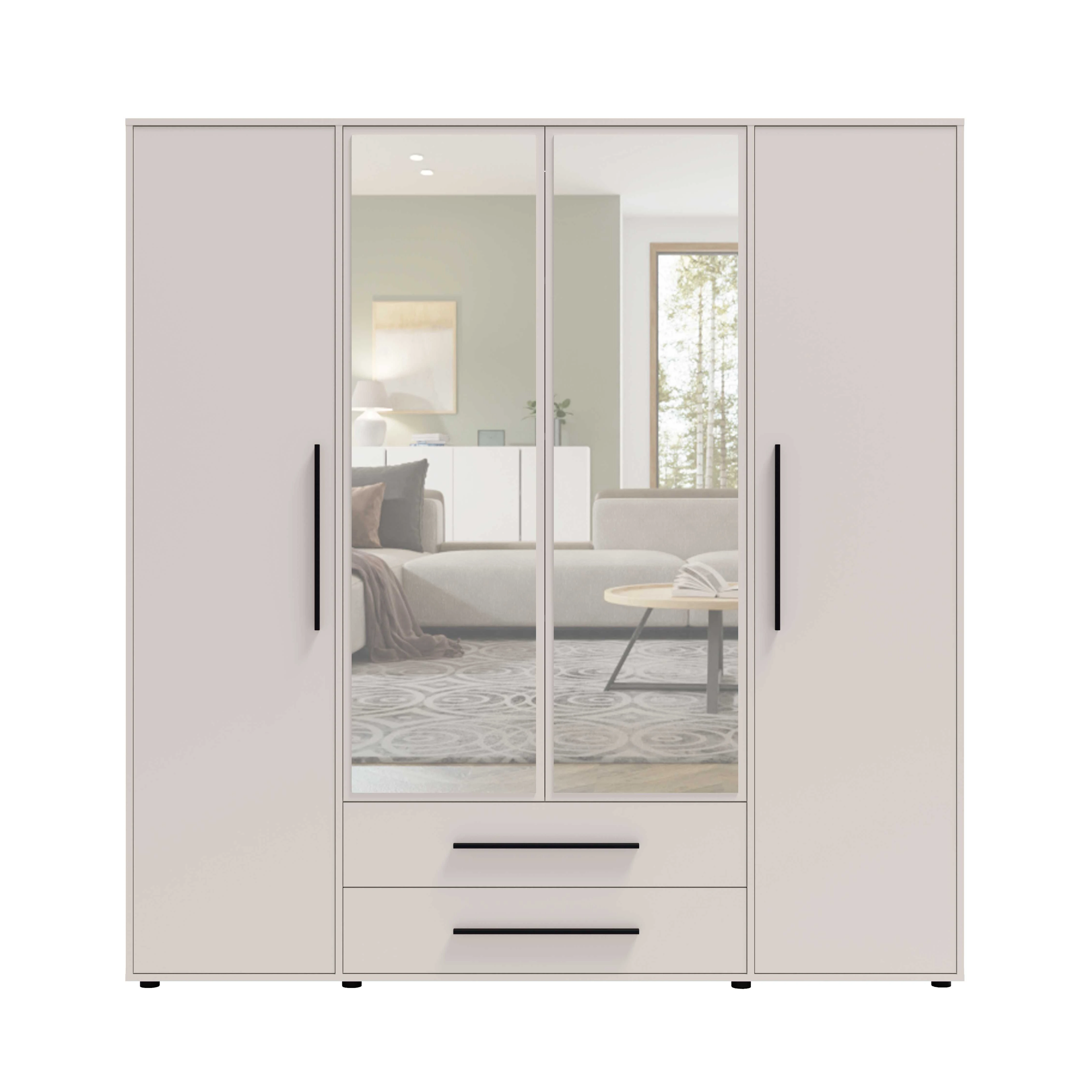 Szafa z Nadstawką MAXIONE MX-13 + MX-06 Szerokość 198 cm Kaszmir Lustro Otwierana Czarne Uchwyty Minimalistyczna