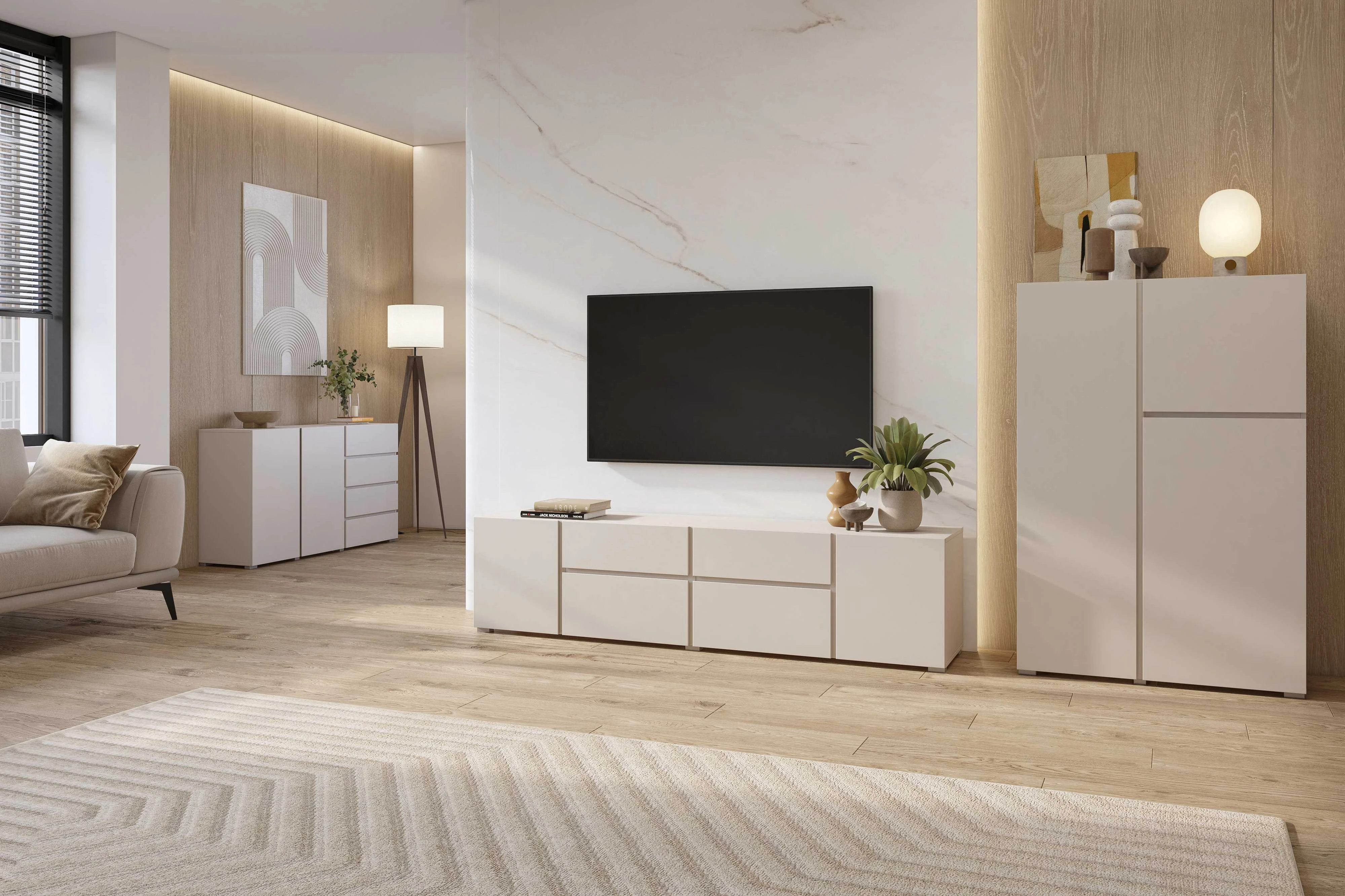 Szafka RTV ASYMETRIC Szerokość 195 cm Kaszmirowa Nowoczesna Do Salonu Helvetia Meble 24KSOA39