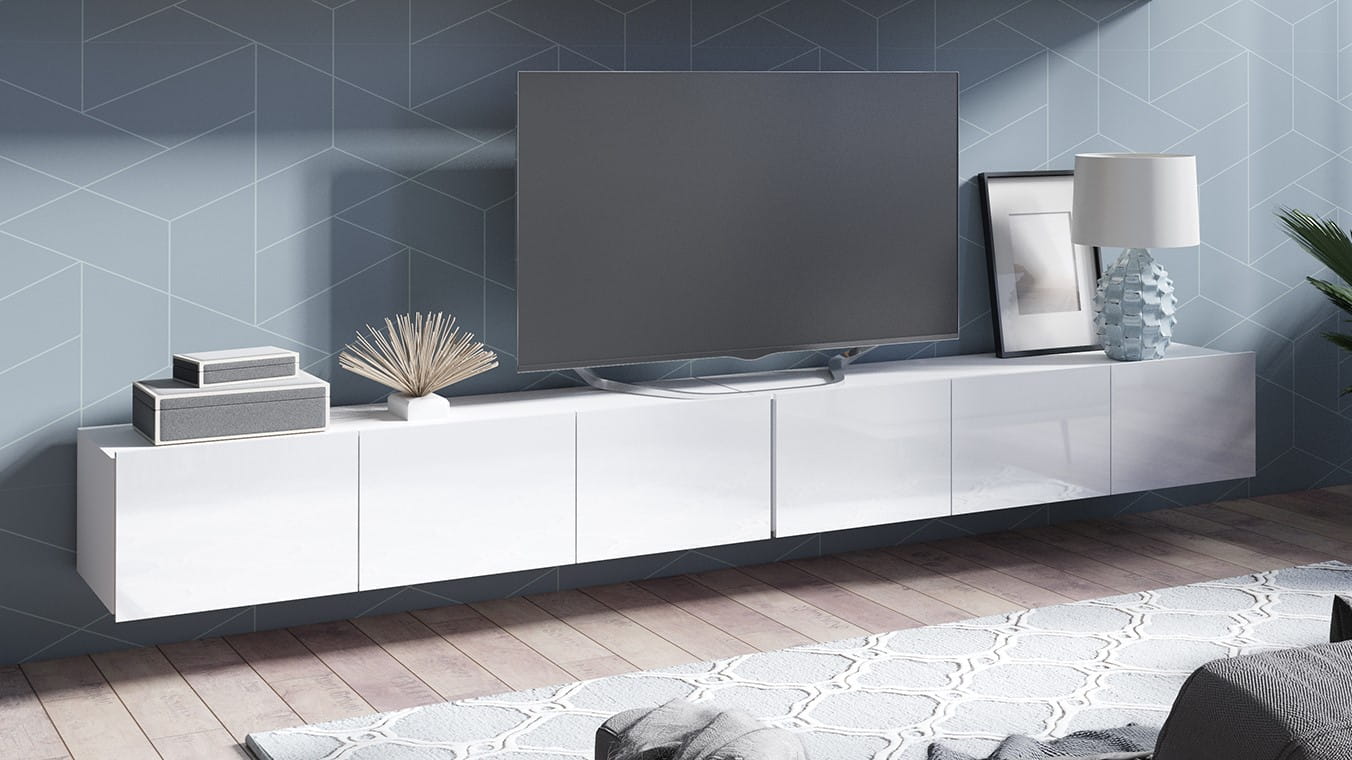 Cechą charakterystyczną prezentowanej kolekcji jest brak uchwytów w szafkach, a także możliwość swobodnego ustawienia meblościanki w zależności od indywidualnych preferencji i potrzeb.