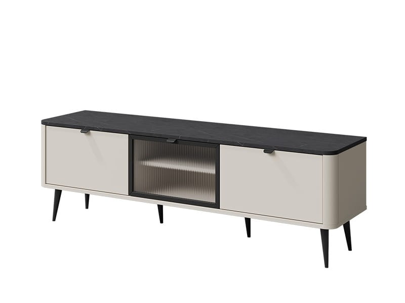 Szafka RTV MARLY 12 Szerokość 160 cm Kaszmir / Szary Kamień 3-Klapy Szkło Ryfle Nowoczesna