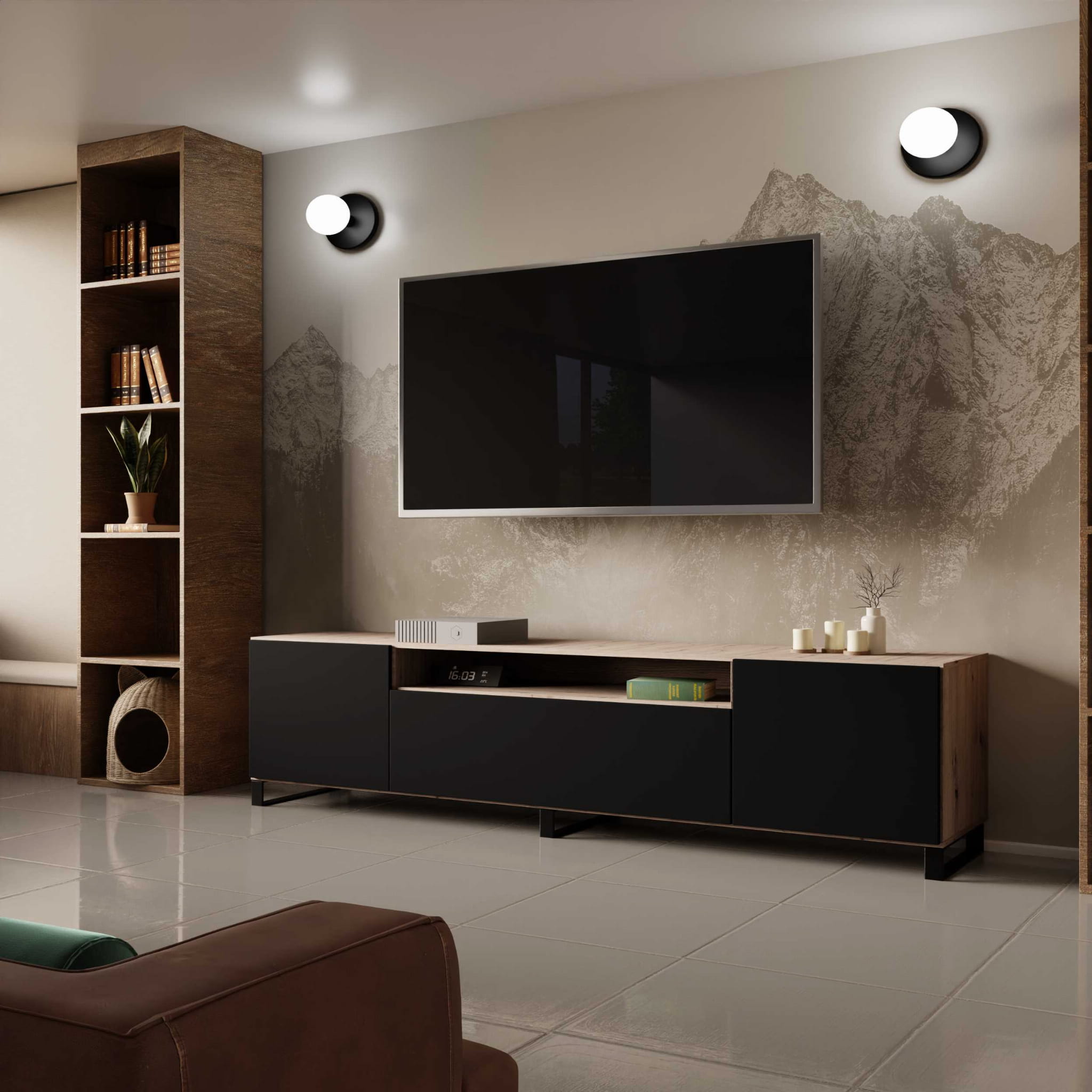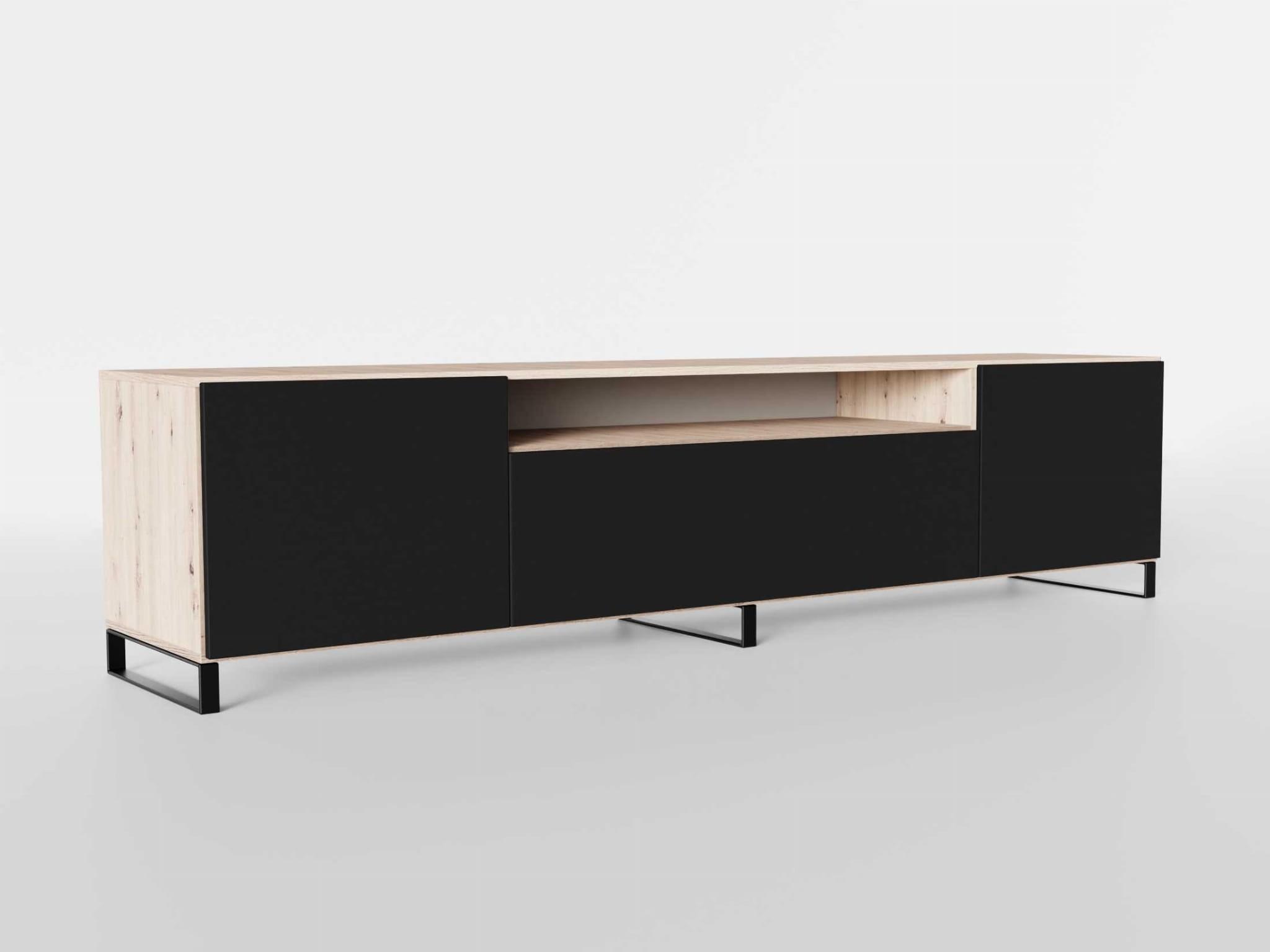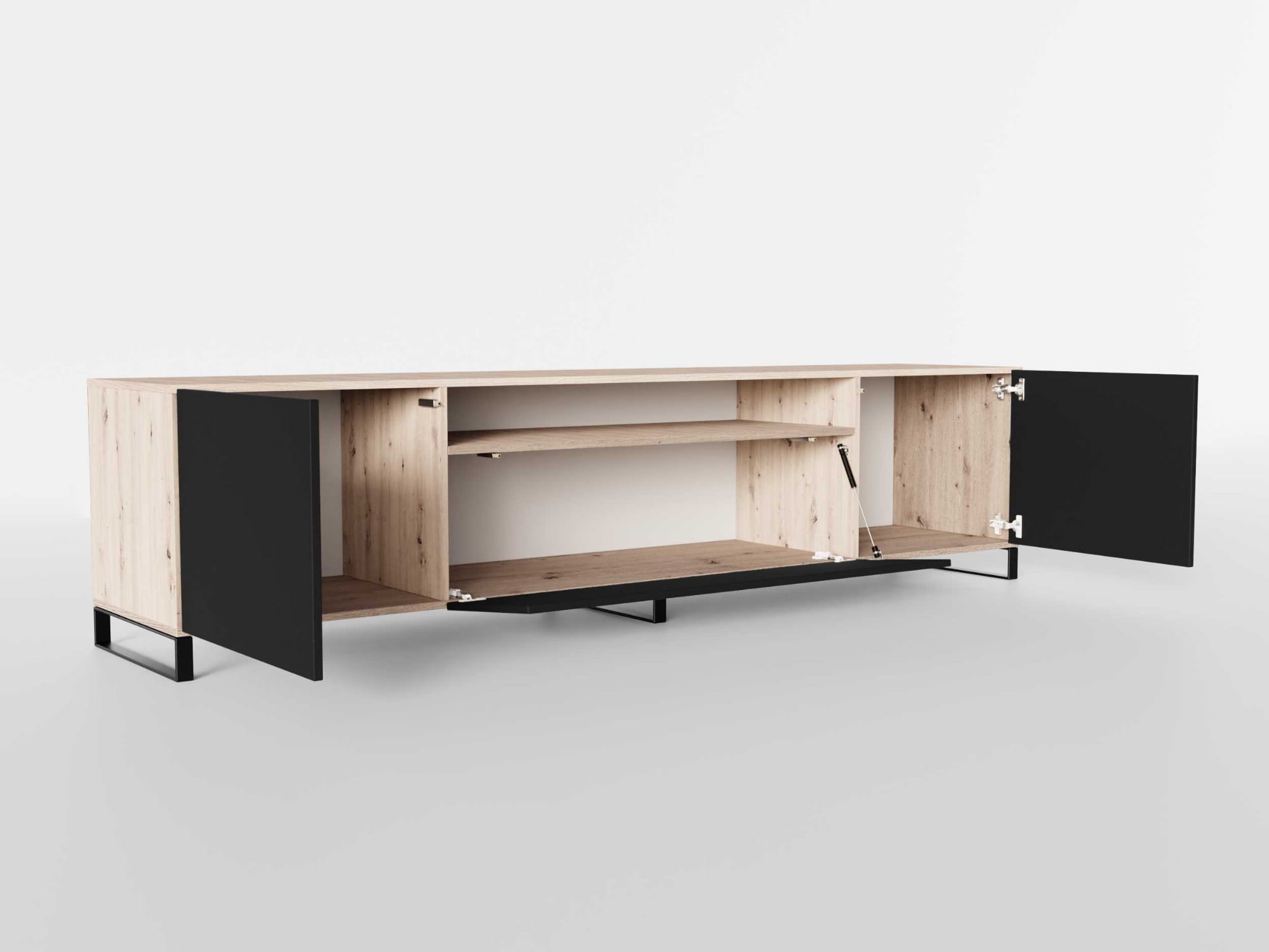 Szafka RTV Stojąca LIO Szerokość 200 cm Dąb Artisan + Czarny Trzydrzwiowa