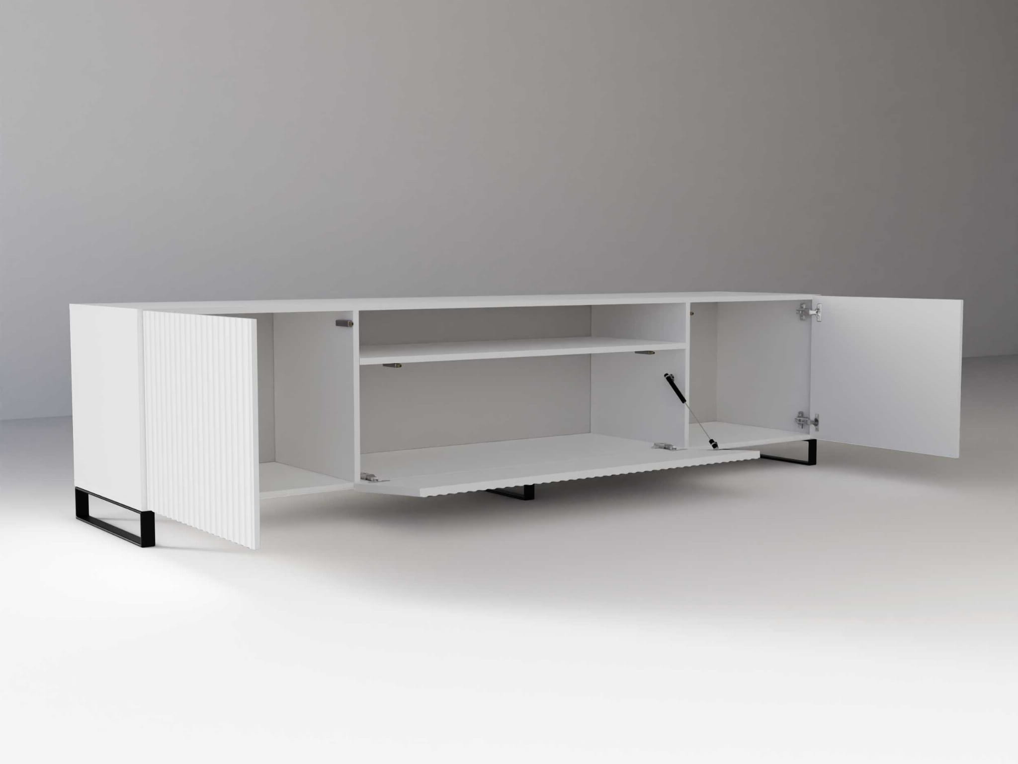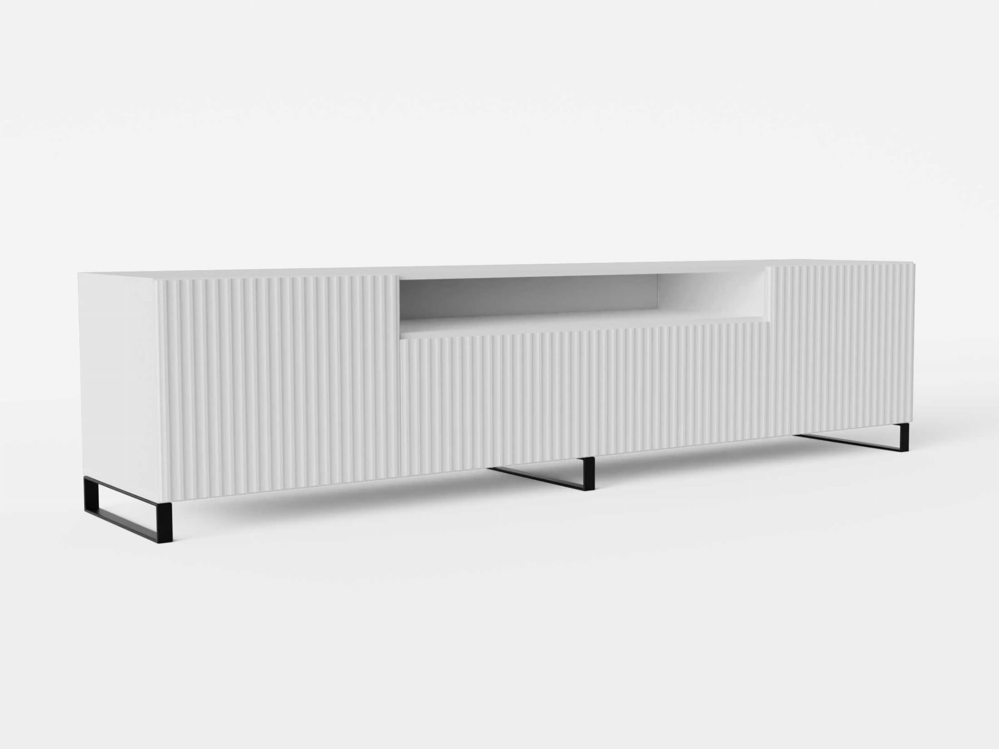Szafka RTV Stojąca NOE Szerokość 200 cm Biała Ryflowany Front Trzydrzwiowa