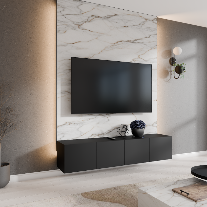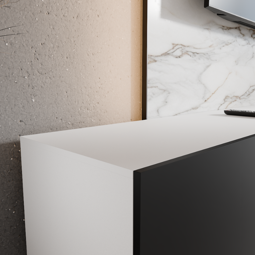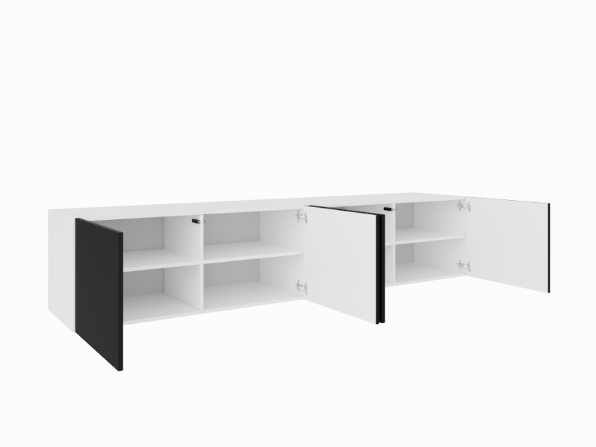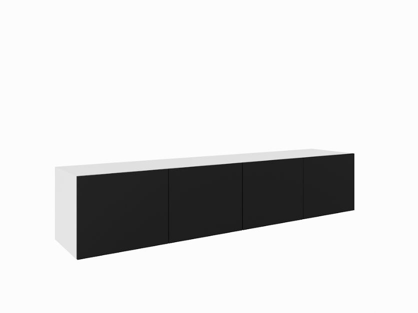 Szafka RTV Wisząca LIO Szerokość 200 cm Biały Mat + Czarny Mat Czterodrzwiowa