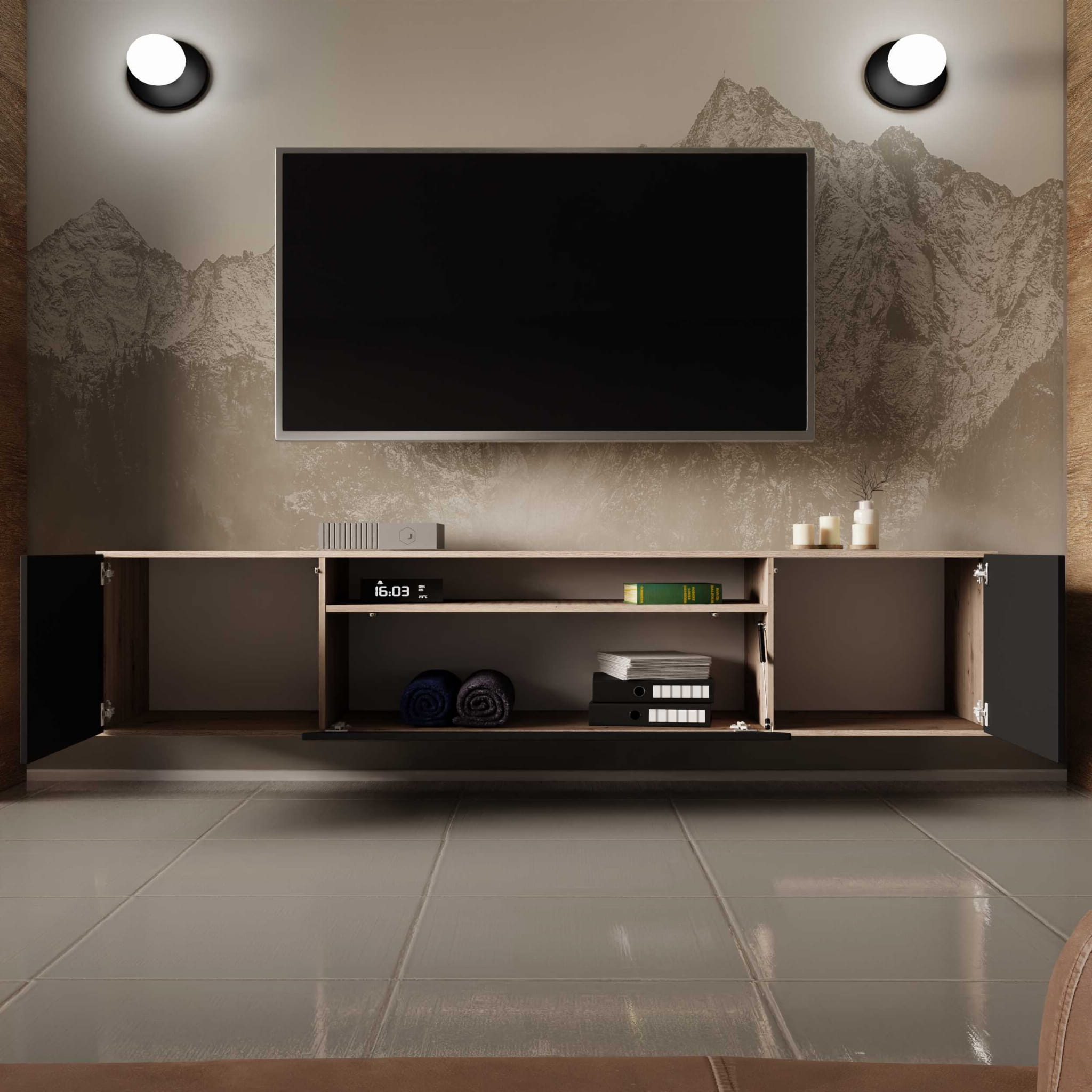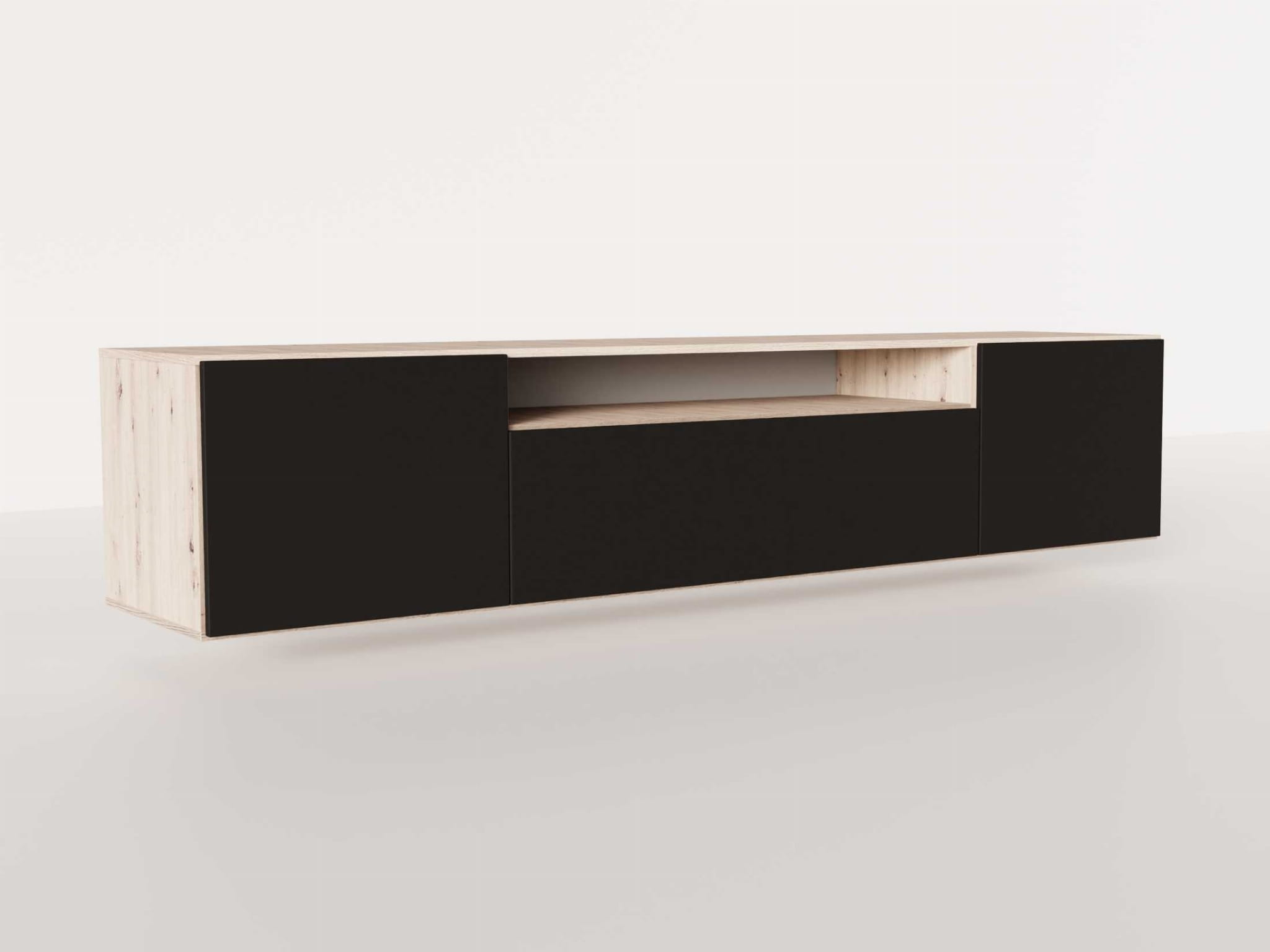 Szafka RTV Wisząca LIO Szerokość 200 cm Dąb Artisan + Czarny Trzydrzwiowa