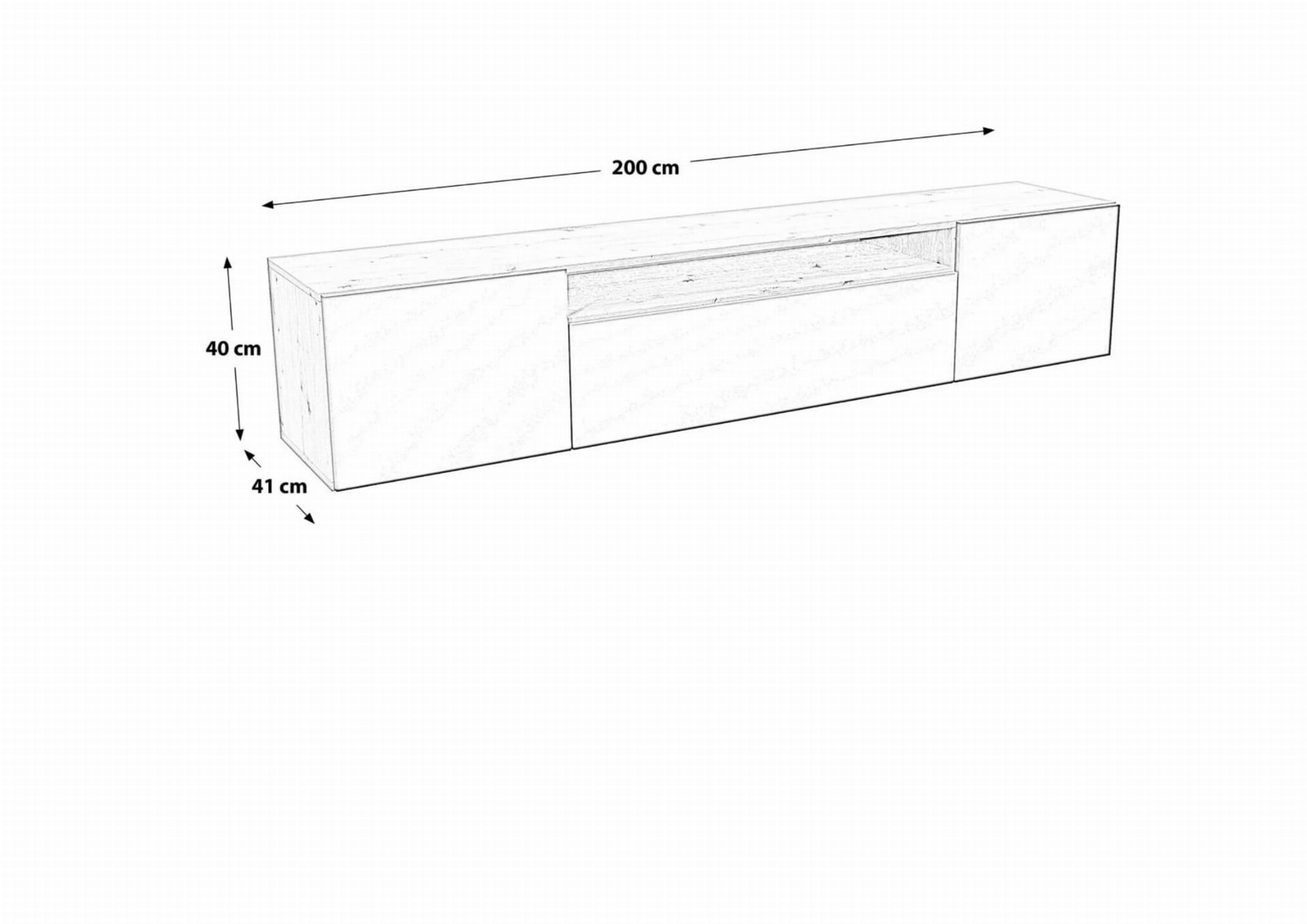 Nowoczesna szafka RTV do salonu o szerokości 200 cm, wysokości 40 cm i głębokości 41 cm, idealnie sprawdzi się w każdym salonie czy też pokoju.