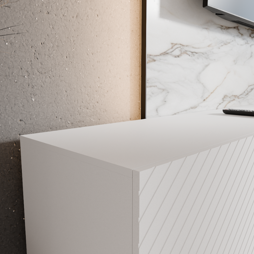 Szafki RTV NIKO posiadają funkcjonalne półki oraz cztery ryflowane fronty, jest to nowoczesny, a zarazem ponadczasowy trend, który z pewnością wpasuje się w Twoją przestrzeń.