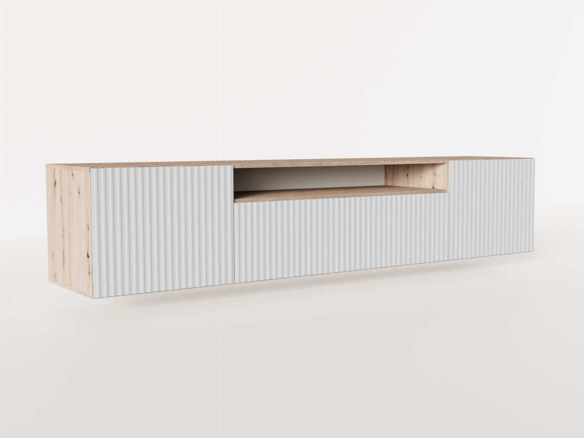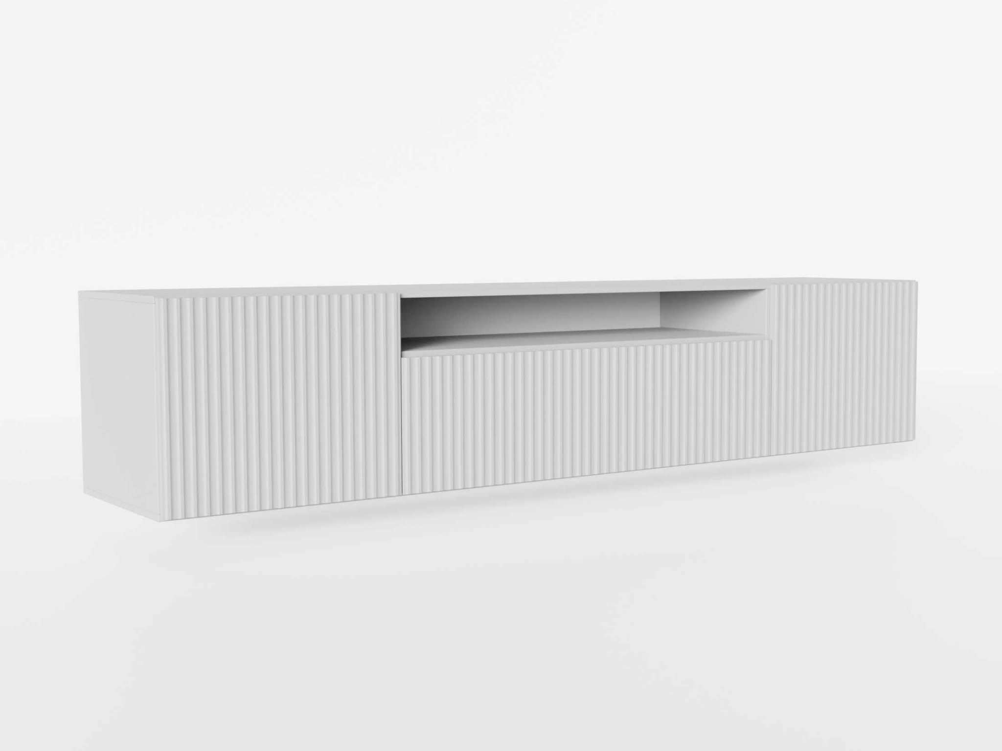 Szafki RTV NOE posiadają funkcjonalną półkę oraz trzy ryflowane fronty, jest to nowoczesny, a zarazem ponadczasowy trend, który z pewnością wpasuje się w Twoją przestrzeń.