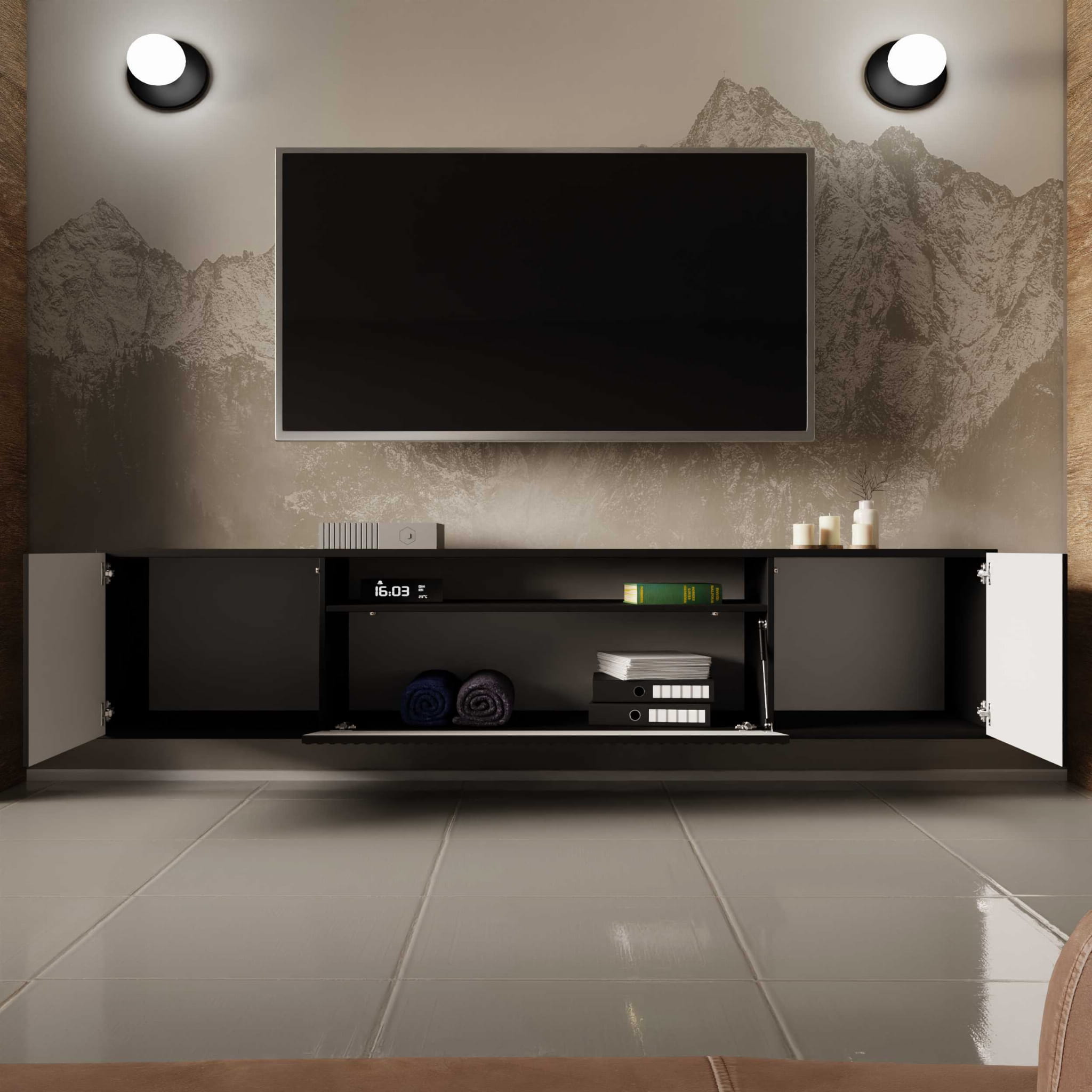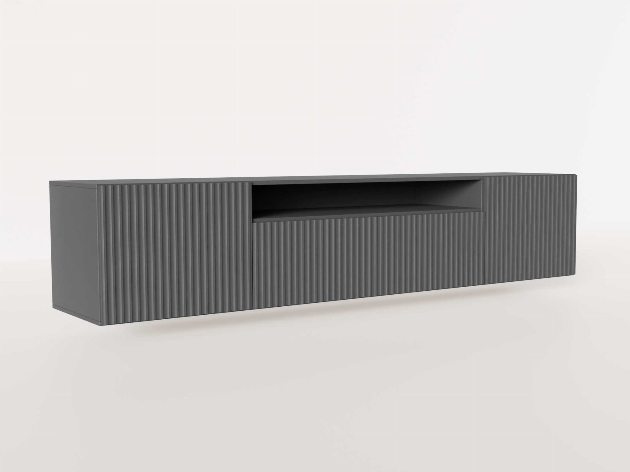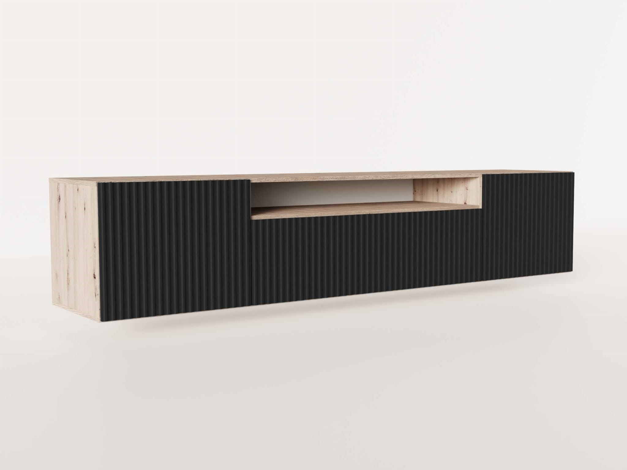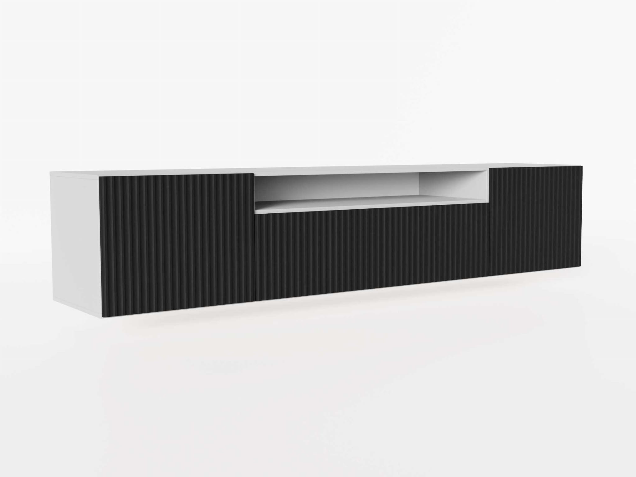 Szafka RTV Wisząca NOE Szerokość 200 cm Czarna Ryflowany Front Trzydrzwiowa
