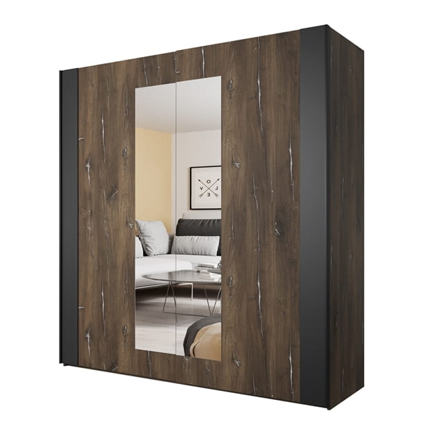 Szafka przesuwna SIGMA Szerokość 200 cm Dąb flagstaf ze stalową nitką / Czarny supermat Helvetia Meble
