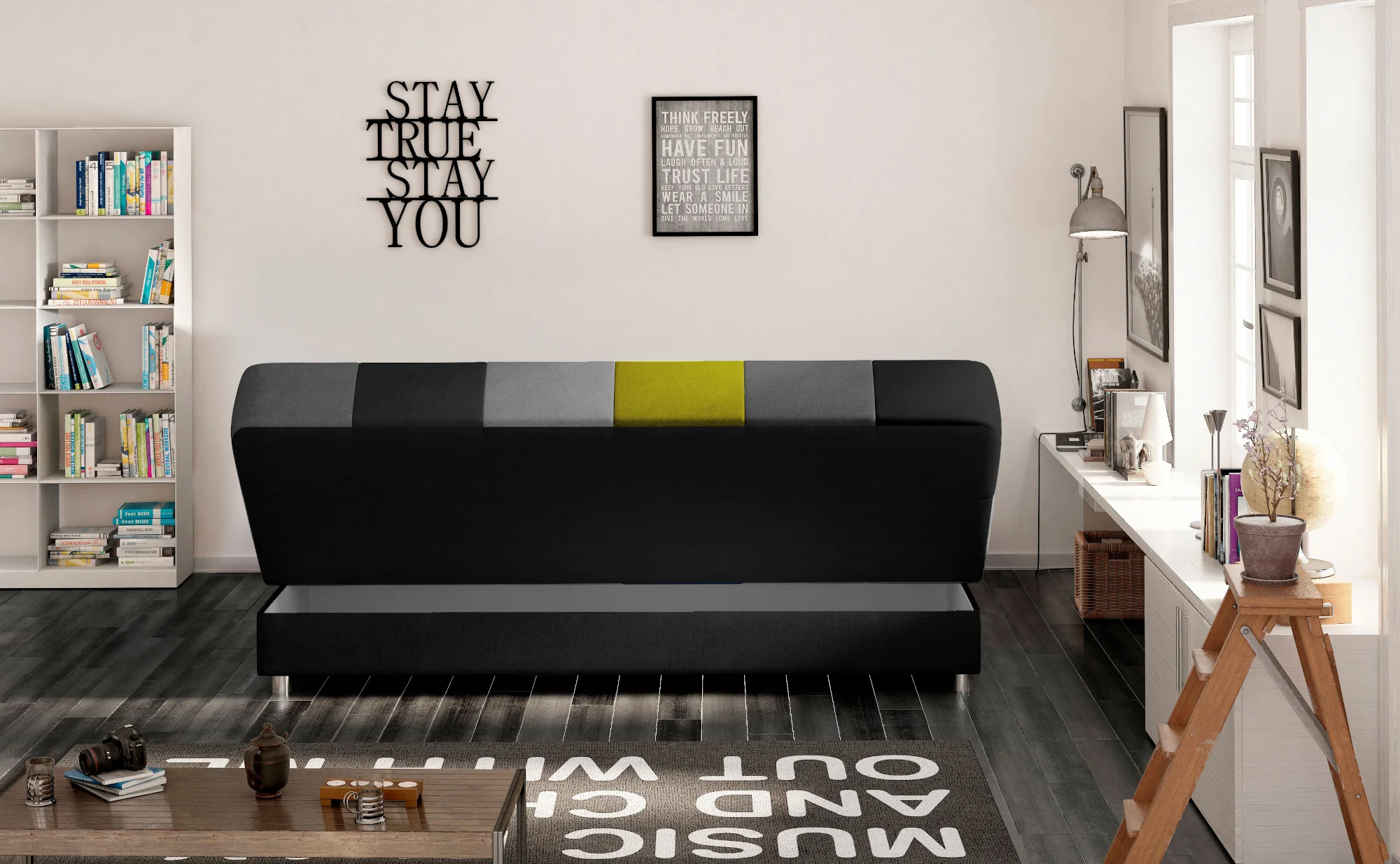 Wersalka CAYO została stworzona z myślą o małych pomieszczeniach, oferując jednocześnie pełnowymiarową wygodę. Jej niewielkie wymiary pozwalają wkomponować ją w niemal każde wnętrze – od salonu po sypialnię czy pokój młodzieżowy. Choć wersalka CAYO zajmuje niewiele miejsca, zaskakuje dużą powierzchnią spania – aż 117 x 192 cm! Dzięki zastosowaniu mechanizmu Klik-klak, rozkładanie mebla jest banalnie proste i szybkie – bez wysiłku i bez dodatkowych elementów. Dodatkowym atutem wersalki CAYO jest pojemny schowek.