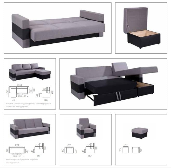 Sofa posiada duży pojemnik w którym możemy przechowywać pościel lub drobiazgi.