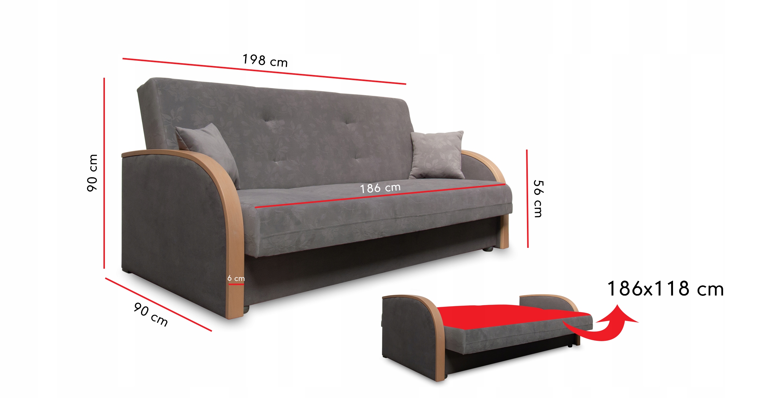 Funkcja spania 186x118 cm pozwoli na wygodny i komfortowy sen nawet dla dwóch osób.