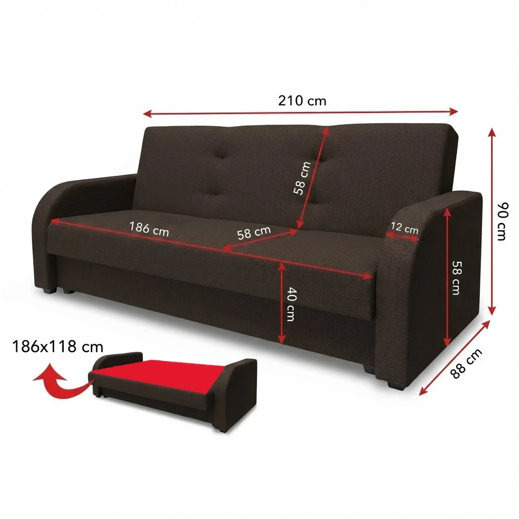 - Funkcja spania 186x118 cm pozwoli na wygodny i komfortowy sen nawet dla dwóch osób.