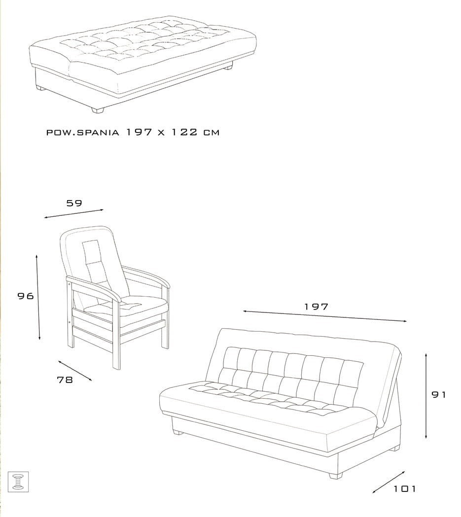 - Powierzchnia spania: 122 x 197 cm