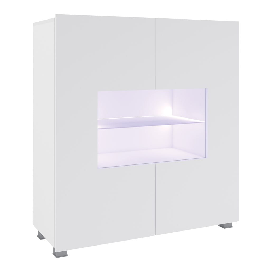 Witryna Komoda 100 cm Biała Połysk Do Salonu Niska LED PRESTIŻ C-02