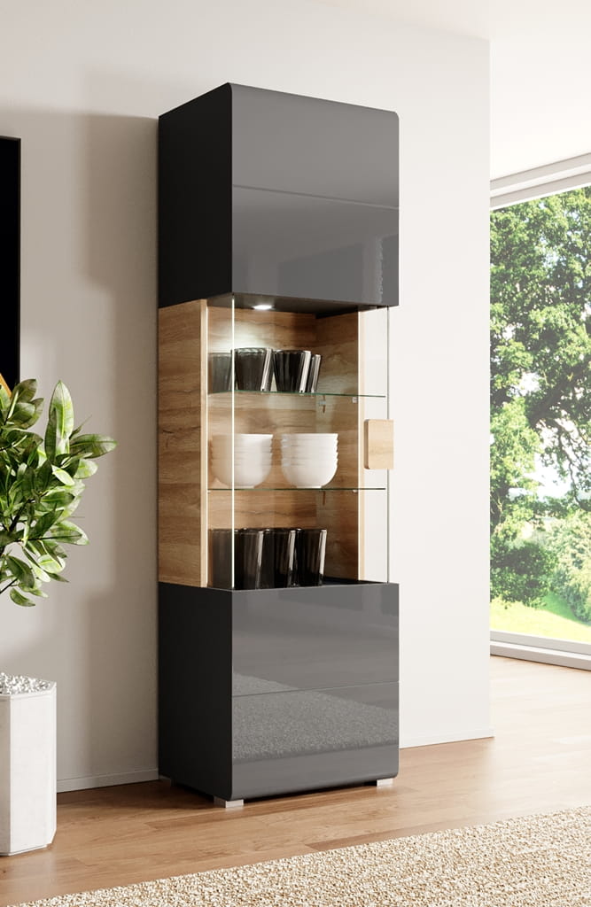 Witryna TOLEDO Szerokość 61 cm Antracyt/Antracyt połysk - Dąb Grandson Helvetia Meble